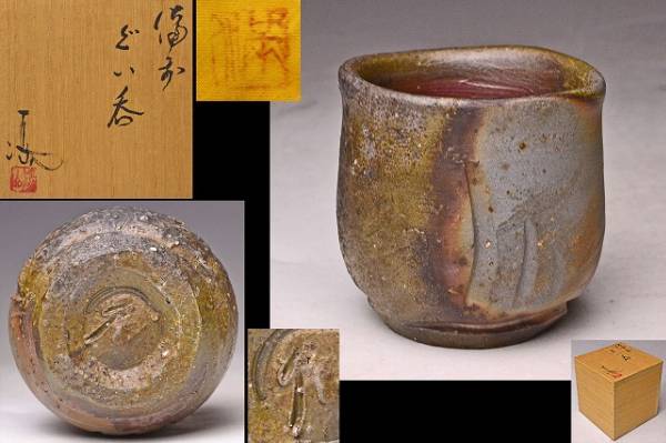 伊勢崎満 ★ 備前窯変ぐい呑 ★ 共箱共布 ★ 上作 ★ 検 人間国宝 伊勢崎淳