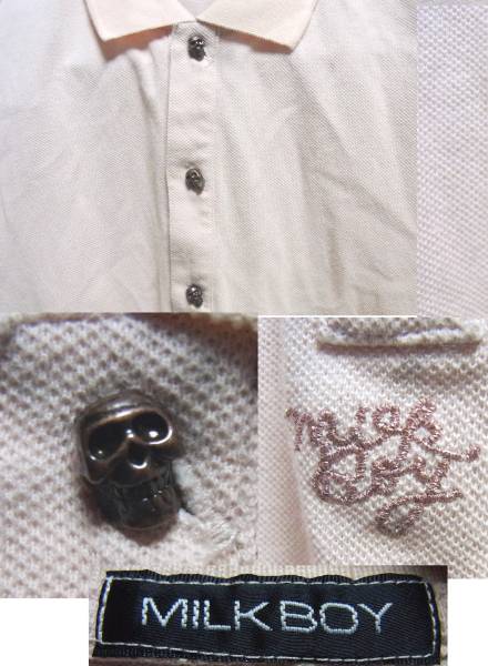 第3ボタン下にはグラフィック調のMILKBOYロゴが刺繍で入っています。