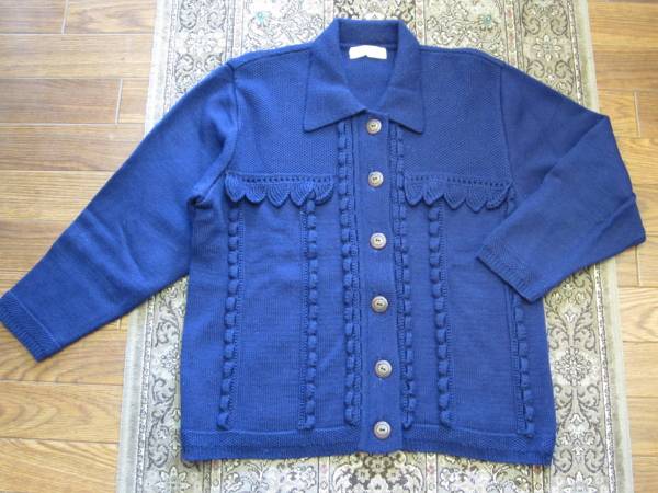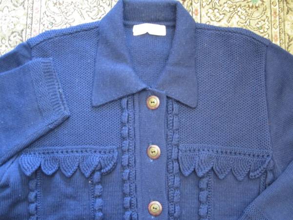 上下を編み変え、先が尖り気味の襟や、両胸のかざり編み、