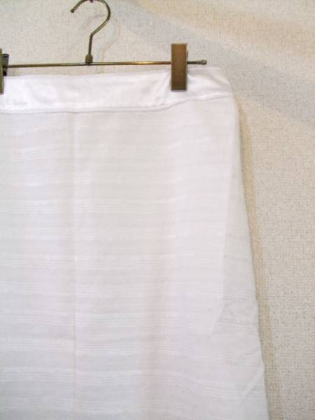 | 商品紹介 | フロッキープリントでボーダーが入った膝丈スカートです。 ウエスト部分はサテン地で、本体部分はコットンブラウスのような素材感です。 色は白です。 ※裏地付きですが、光の加減によって透けるので、別にインナーを はいたほうが良いです。 《素材》 表地:綿45% レーヨン43% ナイロン12% 裏地:キュプラ100% |
