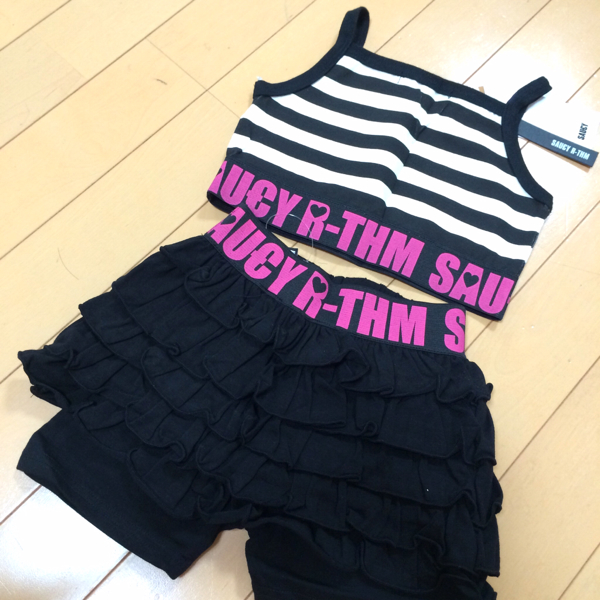 ◆ボーダーキャミソールは短丈の裾リブゴム部にロゴプリ♪胸はロゴ&リボンのラメプリ♪4段フリルミニスカートはウエストリブゴム部にロゴプリ♪インナーにショート丈のレギンスパンツ付でピンクロゴプリント♪ギャル系めちゃ可愛い上下3点セット