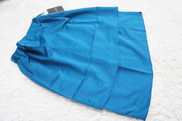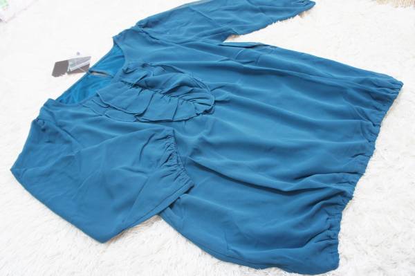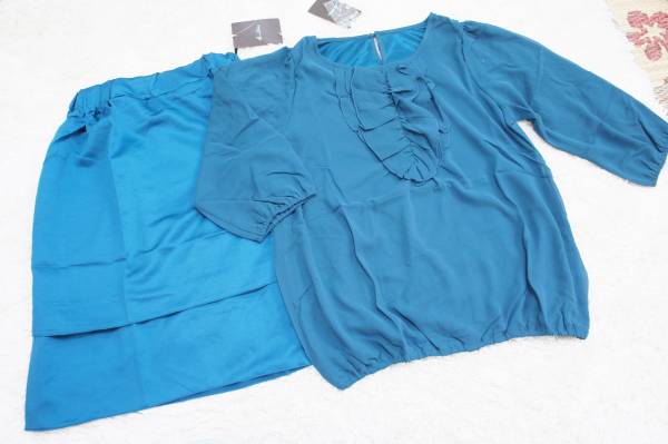 ゆったり胸フリルシフォンブラウス+光沢スカート:上下*緑 M