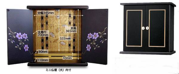 サイズ漆器ミニ仏壇:幅400×奥行40.0×高さ25.5mm