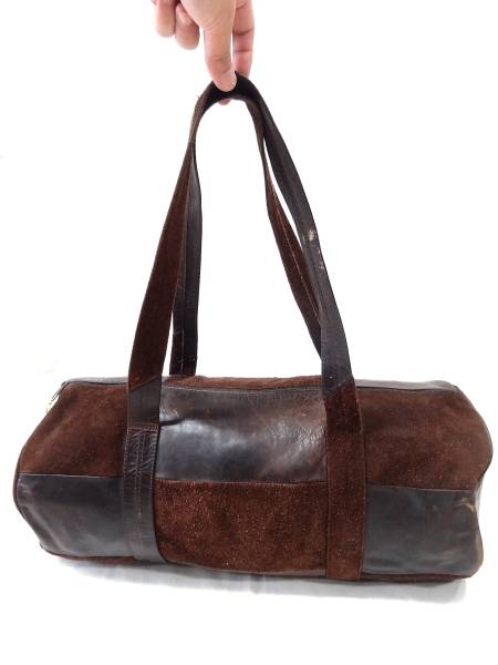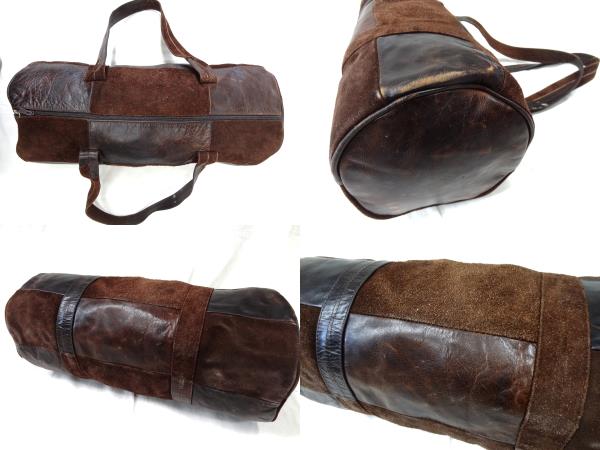 ビンテージ 希少 アンノウン レザー スエード パネル パッチワーク 長め ストラップ トート バッグ レア 茶 こげ茶 ブラウン 珍品 男女可能