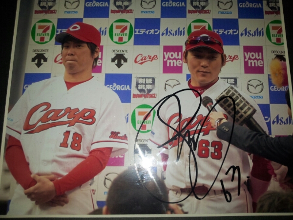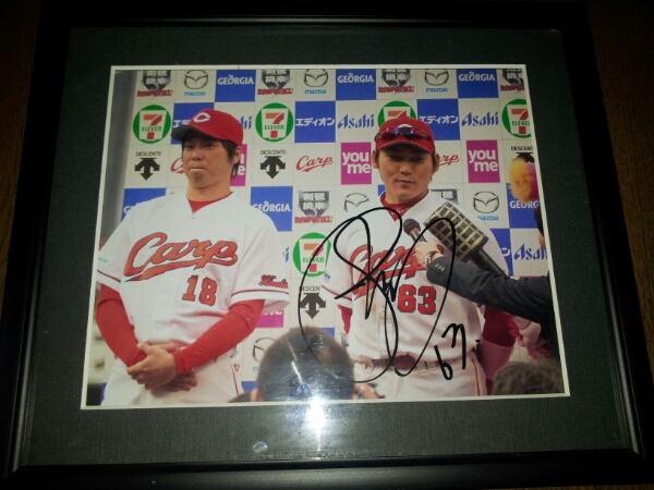 広島の丸選手の非売品、直筆サイン入り6切り生写真の高級額装品です。一点物です。額のサイズは31×26です。