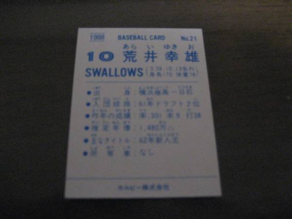 | ■カルビー1988年/No21荒井幸雄/ヤクルトスワローズ | ||