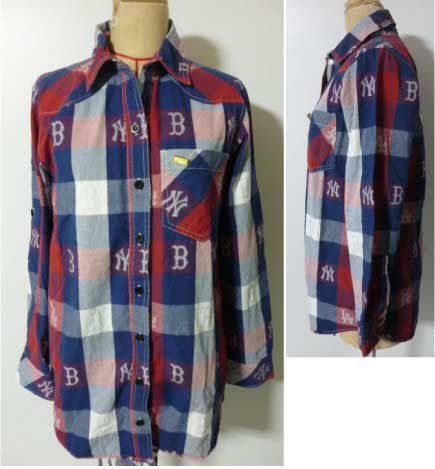 LB-03 MLBヤンキース レッドソックス チェック赤 長袖シャツ 綿
