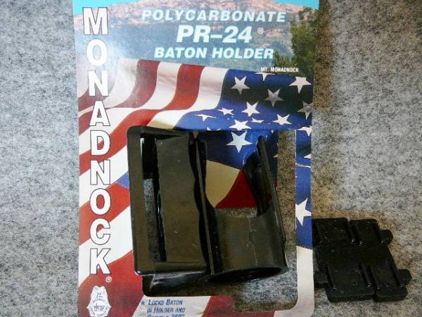 USセキュリティー用品業界の老舗 モノドナック社のトンファーホルダーです 収納しにくい形状のトンファーをベルトに装備する為のホルダーです 黒色の強化プラスティック製です 本体とベルト通し兼押さえが2個のセットになっています 2インチ幅のポリスベルトも使用が可能です