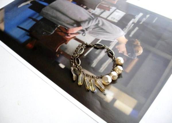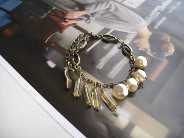 天使の贈り物・・シリーズです♪モード仕様のパール・・個性的なバロックの樹脂パールとチェコビーズのブレスレットです♪ふんわりやさしいオフホワイトの樹 脂パールにデザインチェコビーズやデザインチェーンを合わせてモードな表情です♪樹脂パールは10ミリから12ミ リ位までのバロックです♪長さは全長23センチ位で調節自由です♪お揃いのネックレスも出品しています♪シンプルで合わせやすいデザインを考えました♪ハンドメイドをご理解いただいてノークレーム、ノーリターンでお願いします♪