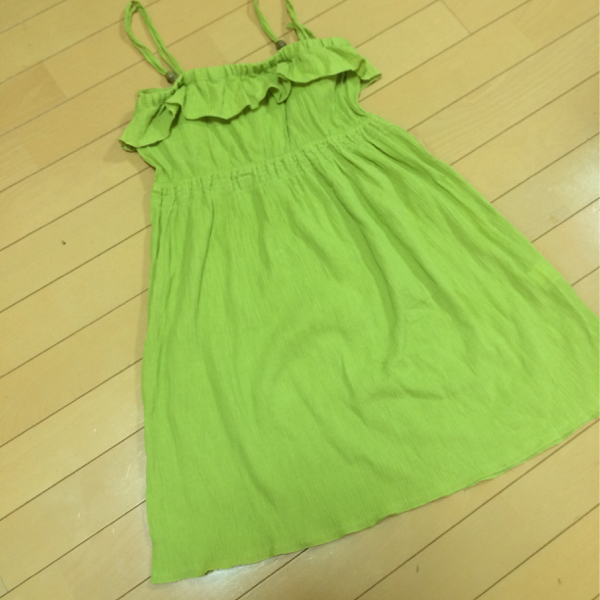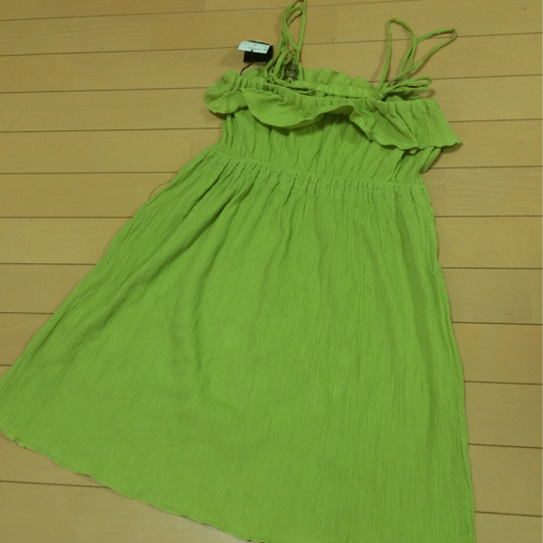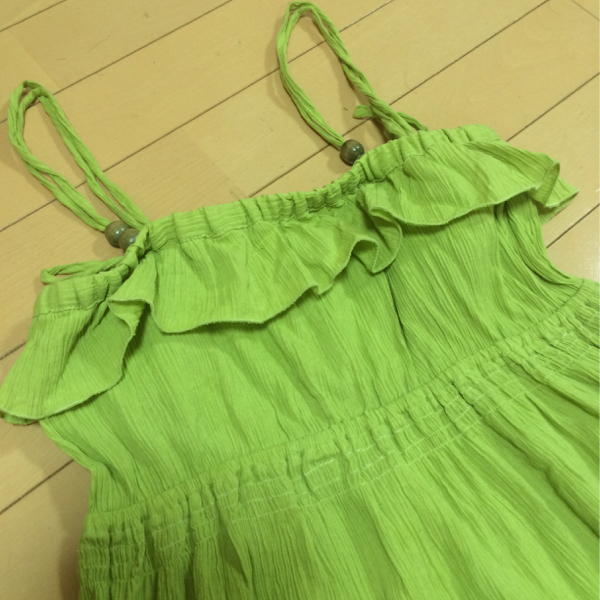 ◆アジアンエスニック風な雰囲気あるグリーンに肩ひもウッドビーズ付♪涼しげなシワ加工コットン素材♪夏リゾートに