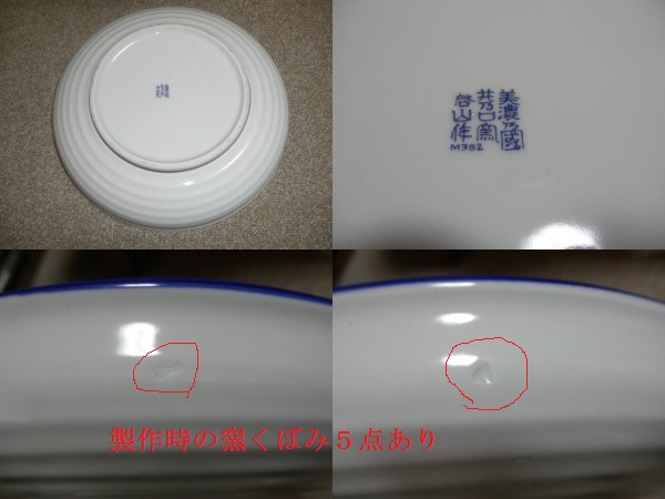 | 昭和レトロの美濃焼の色絵の大きな鉢です。 花の色絵が鮮やかな色合いできれいです。 表部は、キズ欠けは見られませんが、画像表示のように裏部の側面に製作時の窯のくぼみみたいなのが5点見られます。 画像でご判断をお願いいたします。 美濃乃國 井乃口窯 啓山作 M382の表示から輸出品ではないかと思います。 サイズ 口径31cm 5.9cm お願い事項 ※細かい点を気になさるお方もしくは新品をお求めのお方は、ご入札をお控えください。 ご理解納得されてのご入札をお願いいたします。 ♪お客様のPC環境で、実物の商品の色と多少の誤差が生じる場合がございます。それらの点を十分ご理解いただいた上でご入札頂きますようお願い申し上げます。 ♪お客様の思い描くイメージが違うと言った返品はご勘弁ください。 ♪システム手数料・消費税、梱包代金等、一切頂戴致しておりませんので、ご安心して御落札下さい。 ♪発送は基本的に、ゆうパックでの発送になります。 ♪ゆうパック 100サイズ(持込割引100円引)となります ♪梱包材は原則的段ボールなど再生のものを利用しております。 プチプチで包んでしっかり丁寧梱包を心がけていますのでご安心ください。 | |||