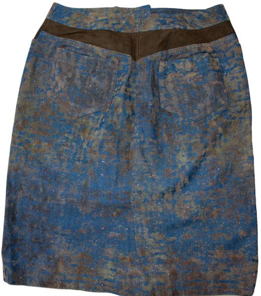 この製品はインディゴ染めの生地に、フロッキー加工とラメプリントを施しています。