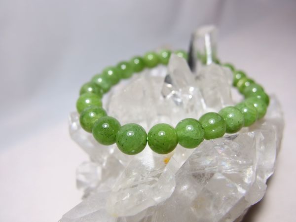 今回、大変綺麗なペリドットが入荷しましたので、数量限定出品致します。 アフリカ産 ミルキーペリドット ブレスレット ★サイズ★ 7.5 mm 18 g ★ペリドット意味 効果★ 美しい黄緑色が特徴の8月の誕生石、ペリドット。 この石は、宇宙から地球へやってくる隕石と同じような成分をしており、古代の人々は『太陽が爆発して飛んできた石』など『太陽の石』として崇拝してきました。 まさに”太陽の石”といわれるごとく、ネガティブなエネルギーを取り除き、ポジティブなエネルギーをもたらしてくれます。 夜に輝きを放つとされるペリドットは、暗闇への恐怖や妄想を吹き飛ばし、ネガティブなエネルギーから身を守る護符としても、活躍してくれるでしょう。 怒りや悲しみなどマイナスな感情におちいりやすい人などには心を癒し、明るく前向きに生きていけるようサポートし、夢を実現させてくれるといわれています。 途中、自信をなくしたり意気消沈してしまったとき、この石をアクセサリーとして身につけてみてください。心が明るく太陽に照らされるように、ふたたび希望をもたらし向上心を復活させてくれるでしょう。 この石は、どんな時にも明るい希望と勇気をもたらしてくれますので、マイナスの感情にとらわれやすい人には、身につけてお守りにすることをお勧めします。ストレスをやわらげ、持ち主の魅力を内面から美しく輝かせるサポートをしてくれますので、異性などからの注目度もアップすることでしょう。 また、ペリドットは知能と関係が深く、知恵と分別を与えてくれる石とされています。 | ||||