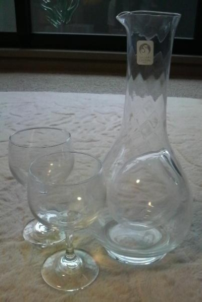 | ワインクーラー(デキャンター)とミニワイングラス2個のセットです。 ★新品未使用です。 | ||