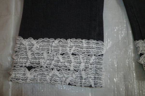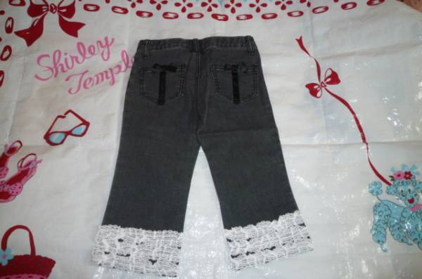 ご覧頂きありがとうございます。新品未使用、タグ付き、自宅保管。店頭のような完璧な商品をお求めの方、神経質な方はご遠慮して下さい。ノークレームでお願いいたします。きれいに保管できてました。保管による しわ はお許しください。保証はありませんが定形外500円で配送できます。自宅計測により 差額が出てしまう場合があるかもしれません。返金しませんので ご理解いただける方のみ 入札お願いいたします。差額に納得できない方は ご遠慮してください。レターパック510円配送。。綿95 ポリウレタン5.7分丈 黒デニムパンツ。ストレッチきいてて着脱しやすいです。裾3段 レースでかわいいです。うしろポケットにリボン付き。
