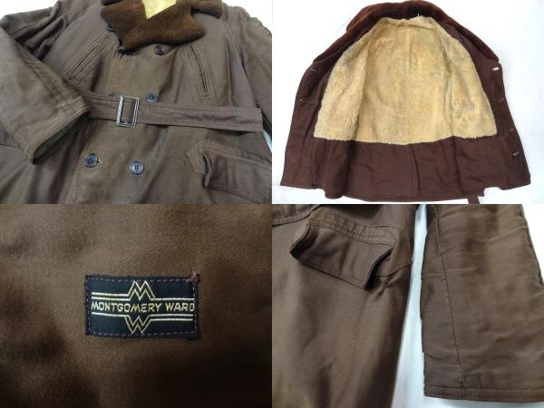 ビンテージ モンゴメリーワード 希少 40S~50S 襟ボア ショールカラー コットン カーコート ヘチマ襟 オリジナル ベルト サイズ 48 レア