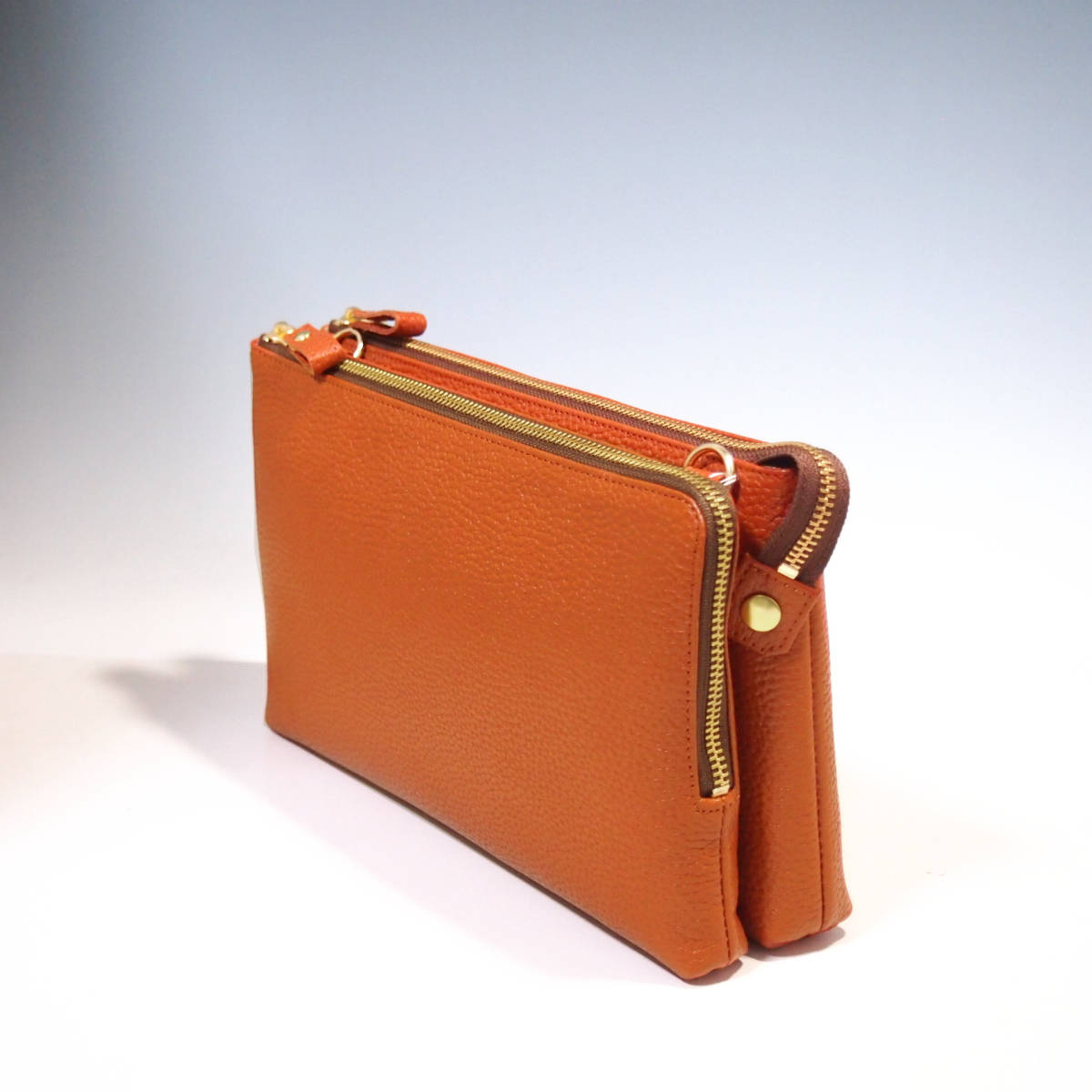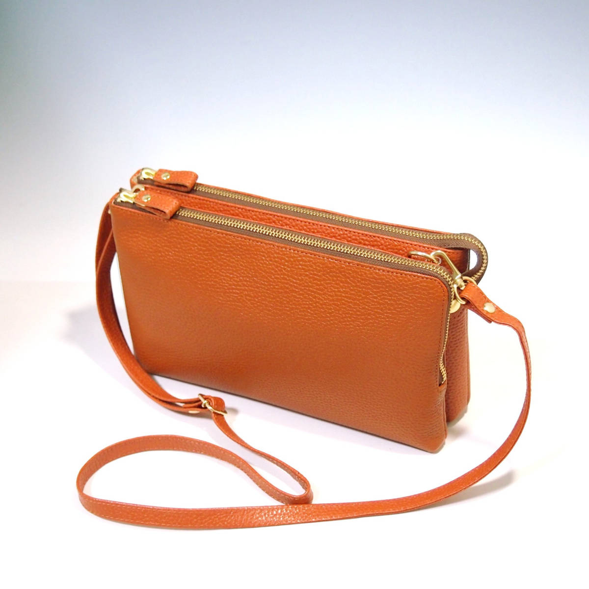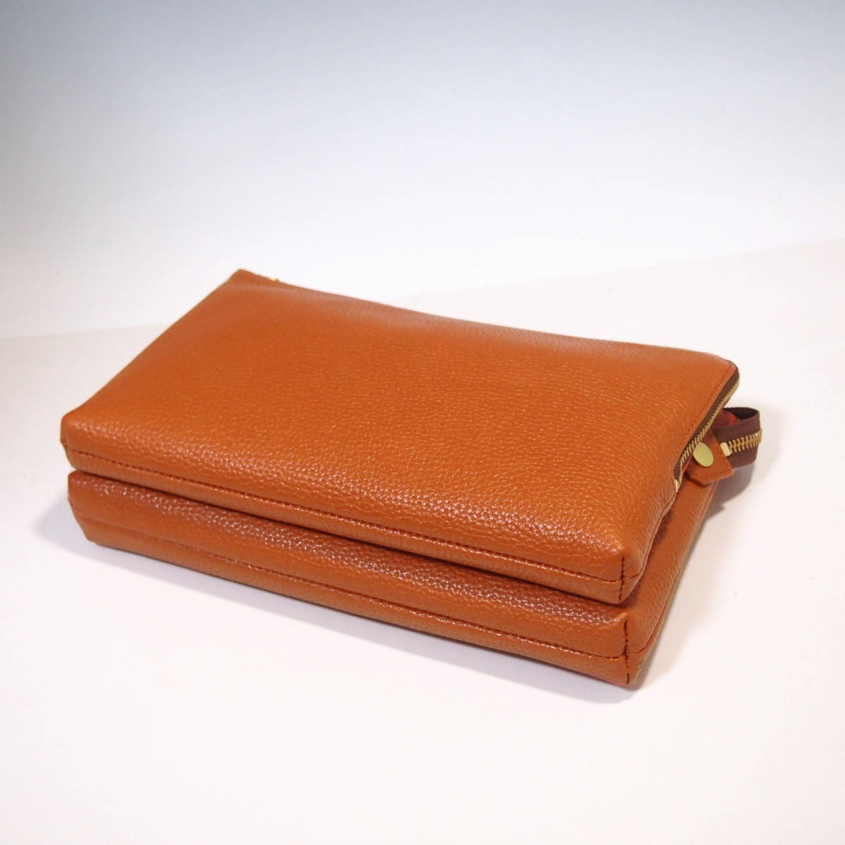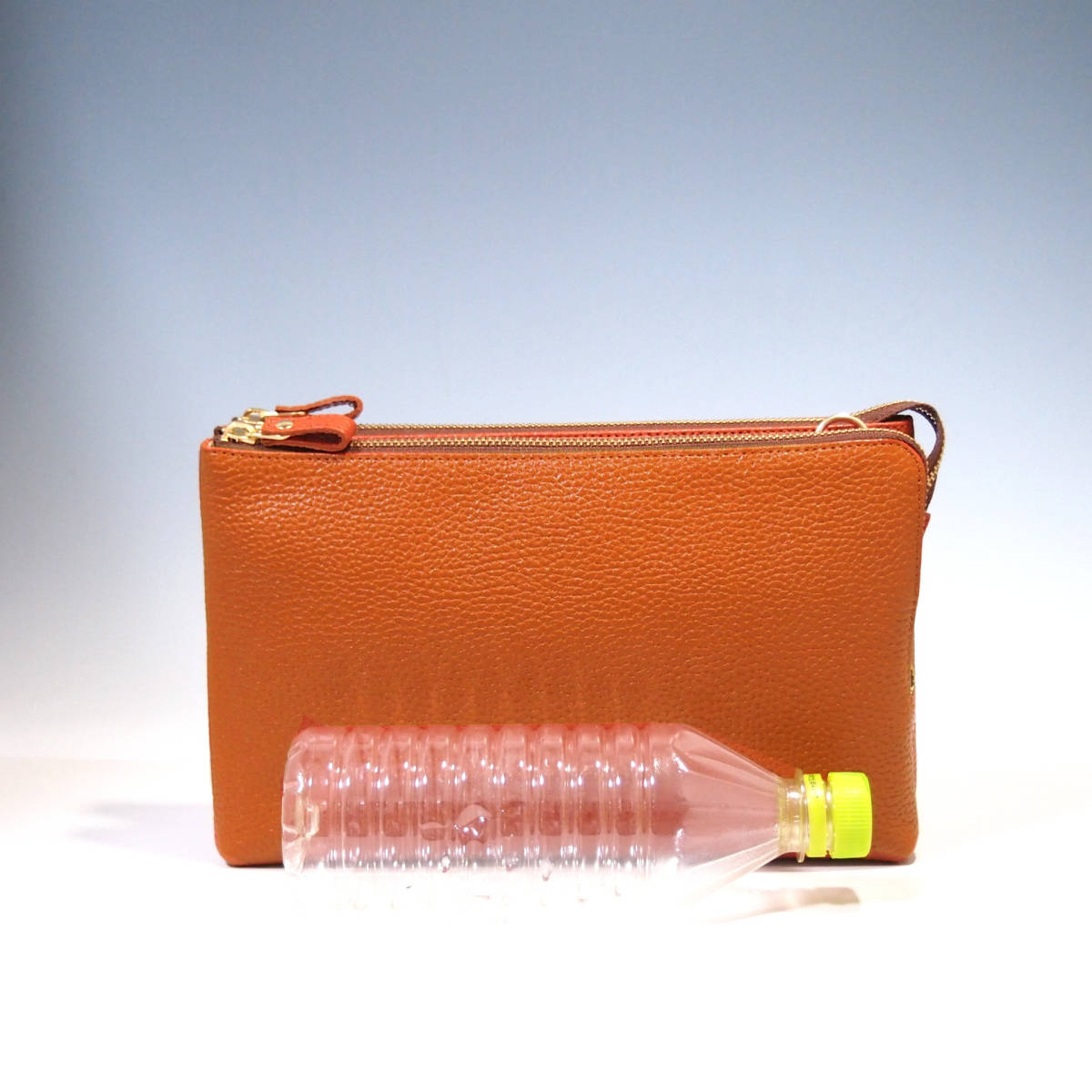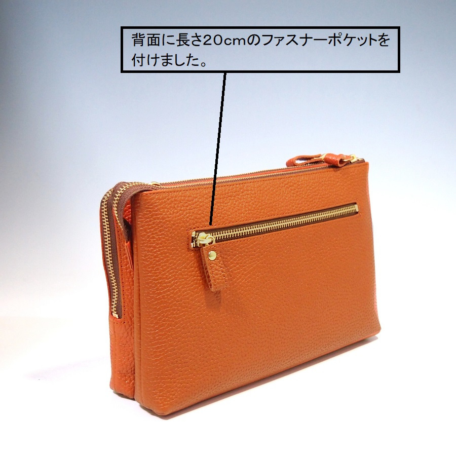 ★ハンドメイド★日本製★本革★お財布ポシェット★サコッシュ★L字ファスナー・特大寸★斜め掛けショルダーバッグ★オレンジチャ色★