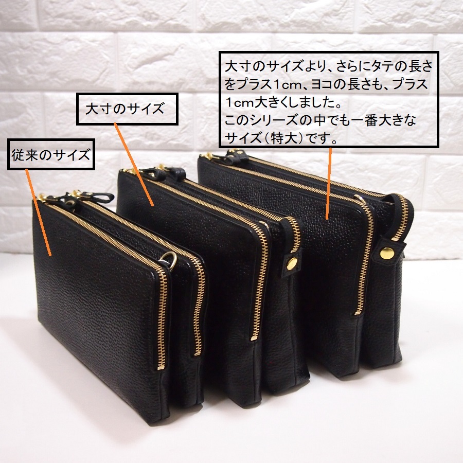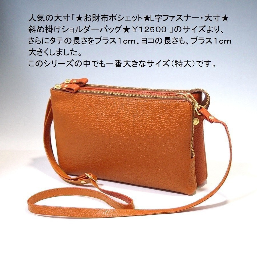 人気の大寸「★お財布ポシェット★L字ファスナー・大寸★斜め掛けショルダーバッグ★12500円」のサイズより、さらにタテの長さをプラス1cm、ヨコの長さも、プラス1cm大きくしました。