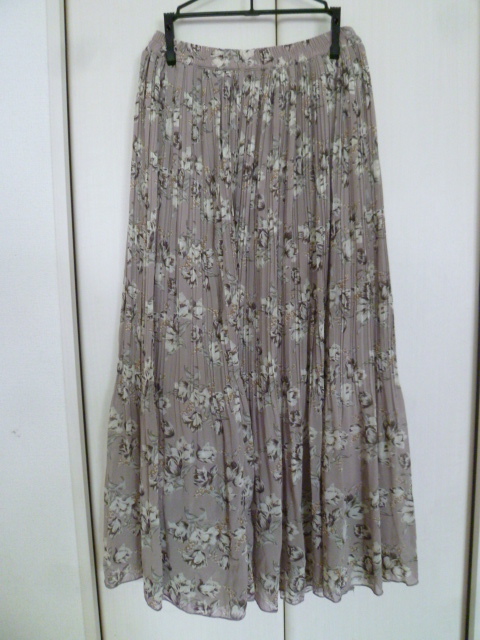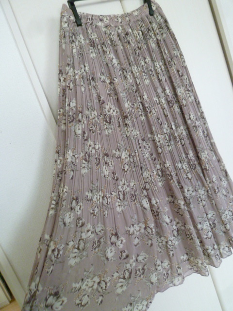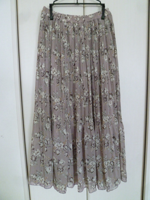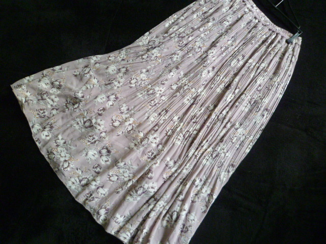 GRL/グレイル◇くすみパープルピンク系レトロ花柄細いプリーツフレアースカートM/ロング色違い出品中◇a323SKP
