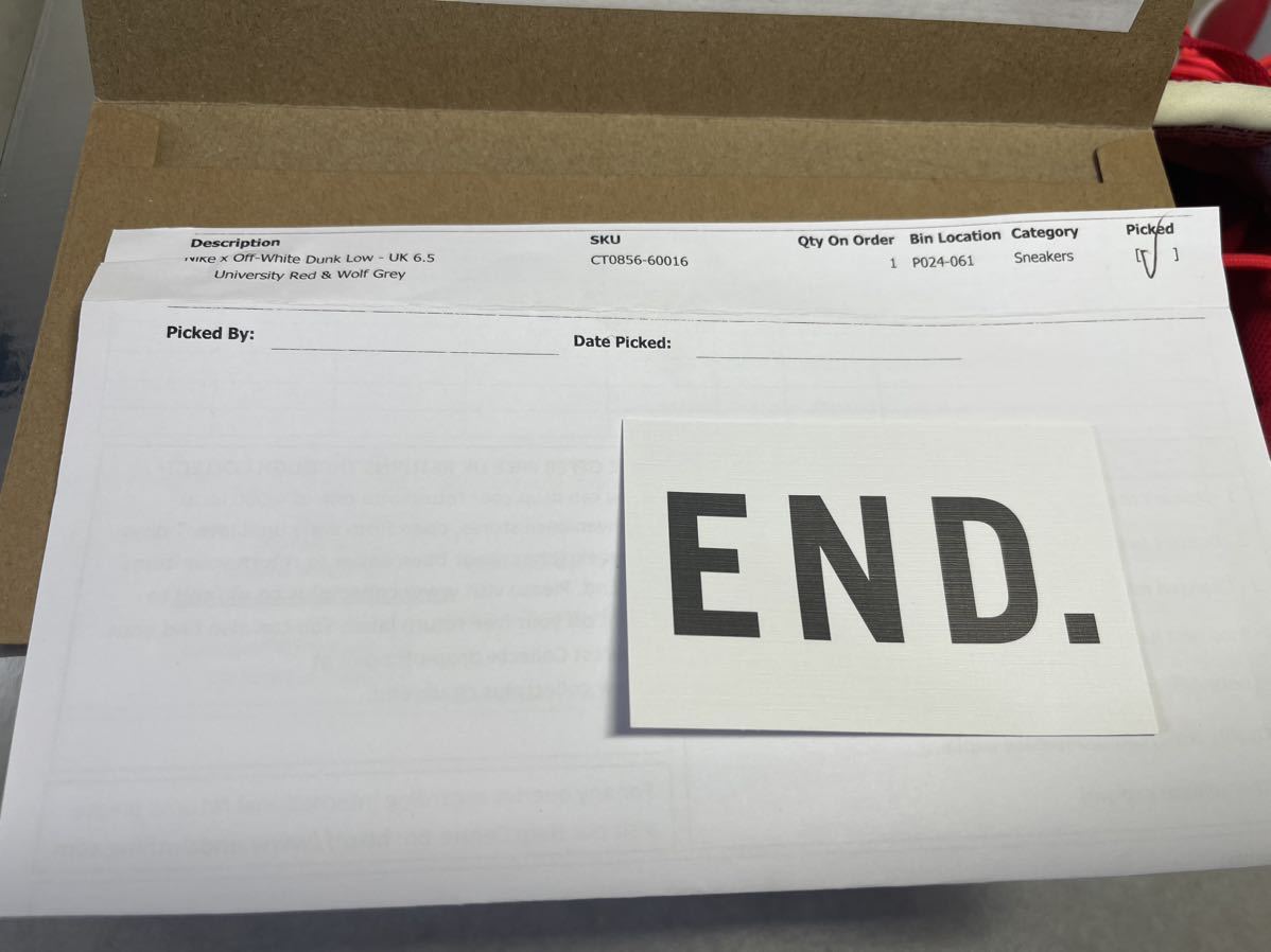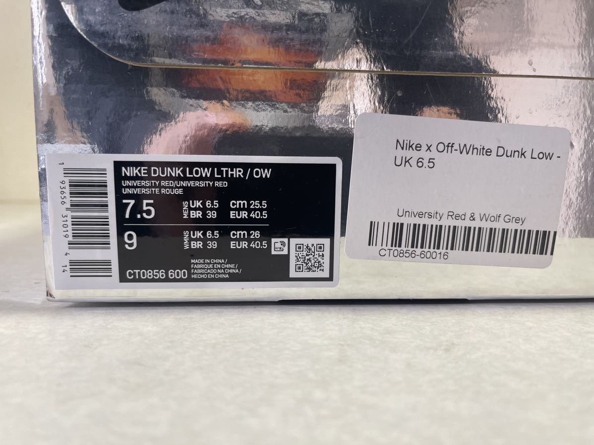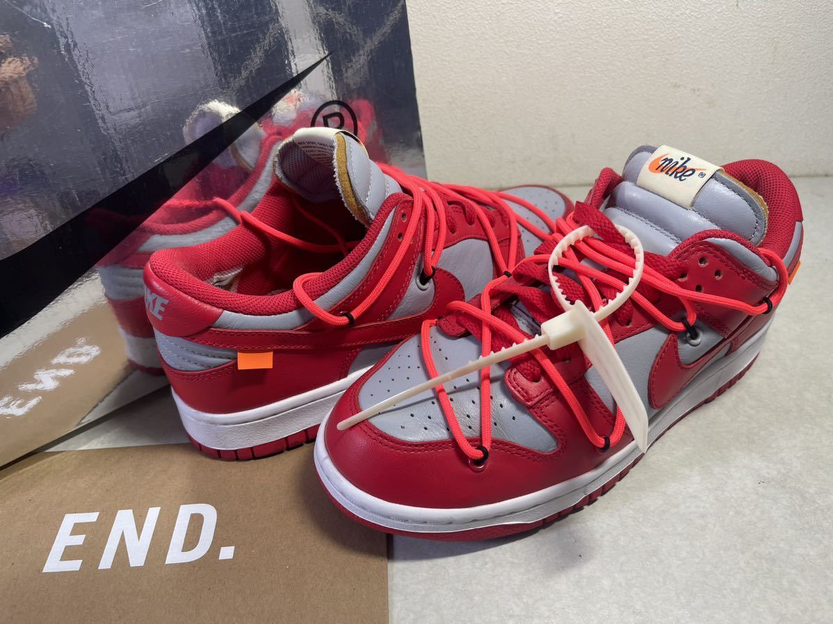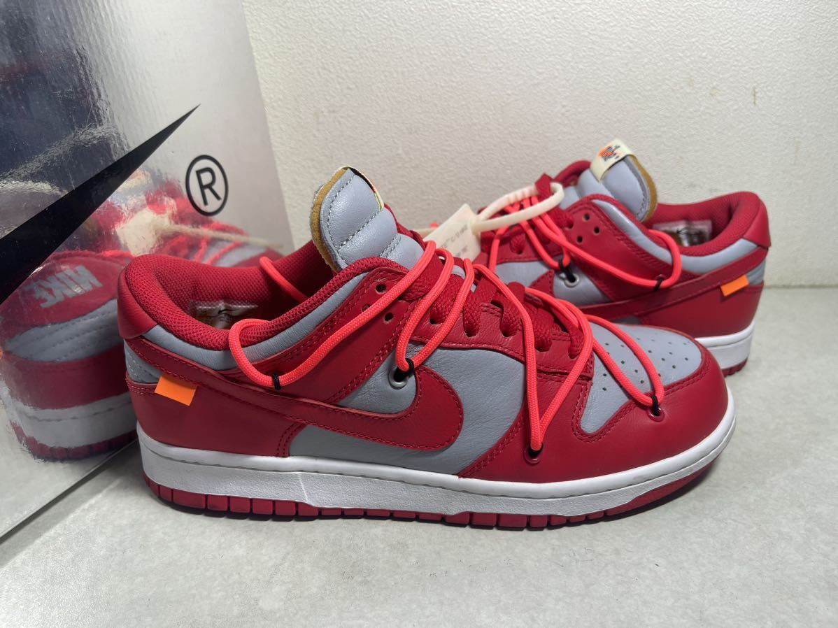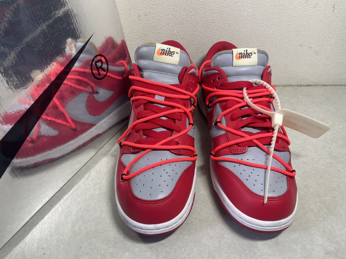 NIKE DUNK LOW LTHR OFF-WHITE ダンク ロー オフホワイト RED x GREY US7.5 USED CT0856-600