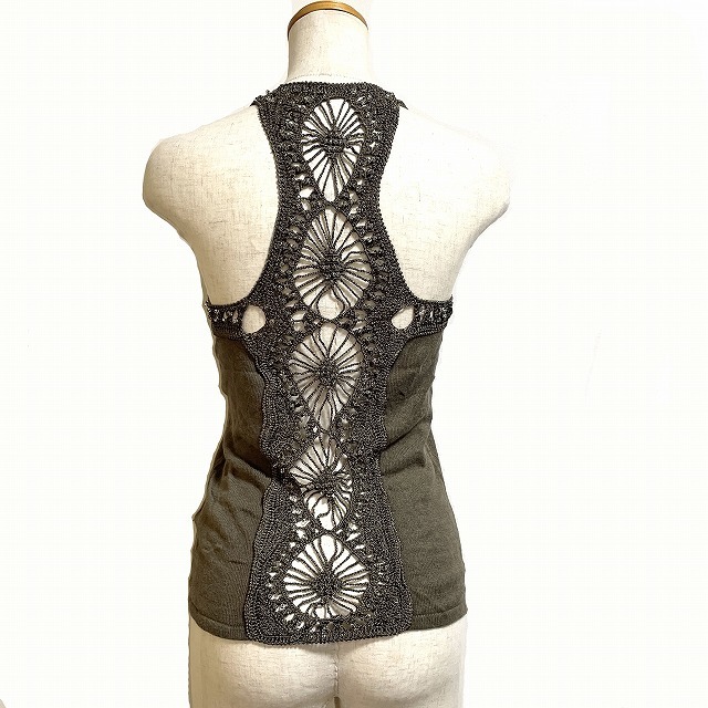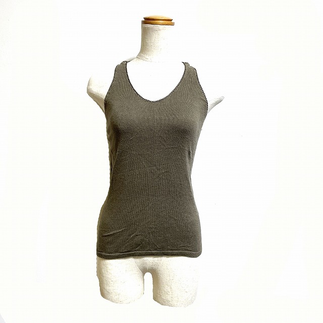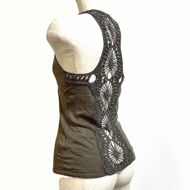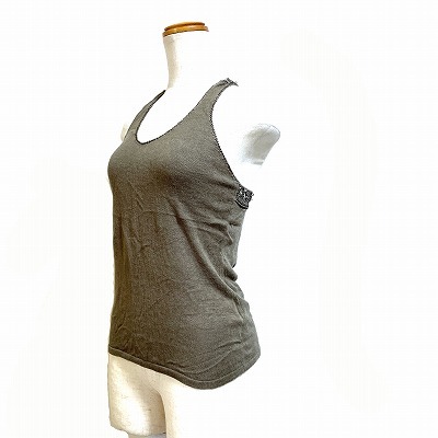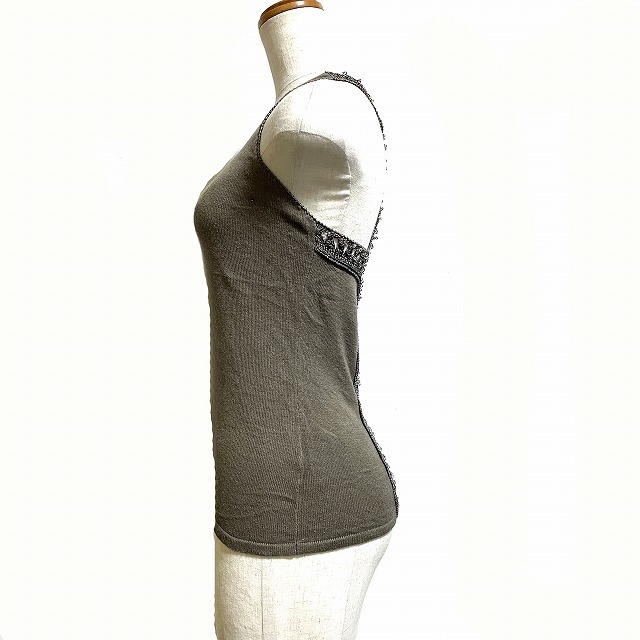 RENOVAR タンクトップ レース切替 ビーズ装飾 ノースリーブ ? カーキ /AG レディース