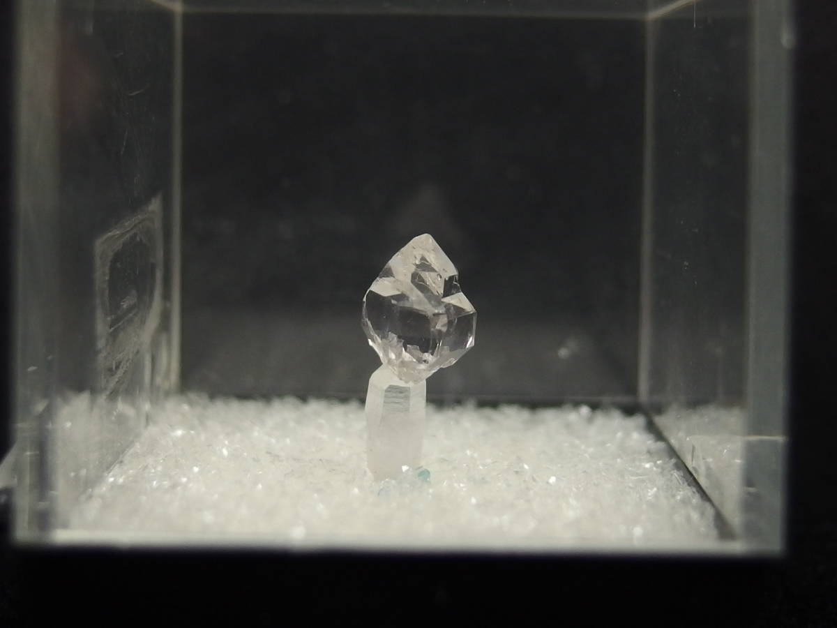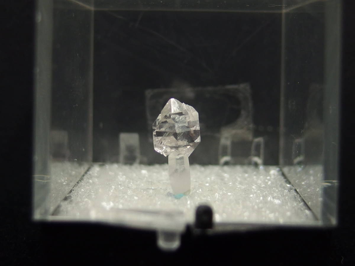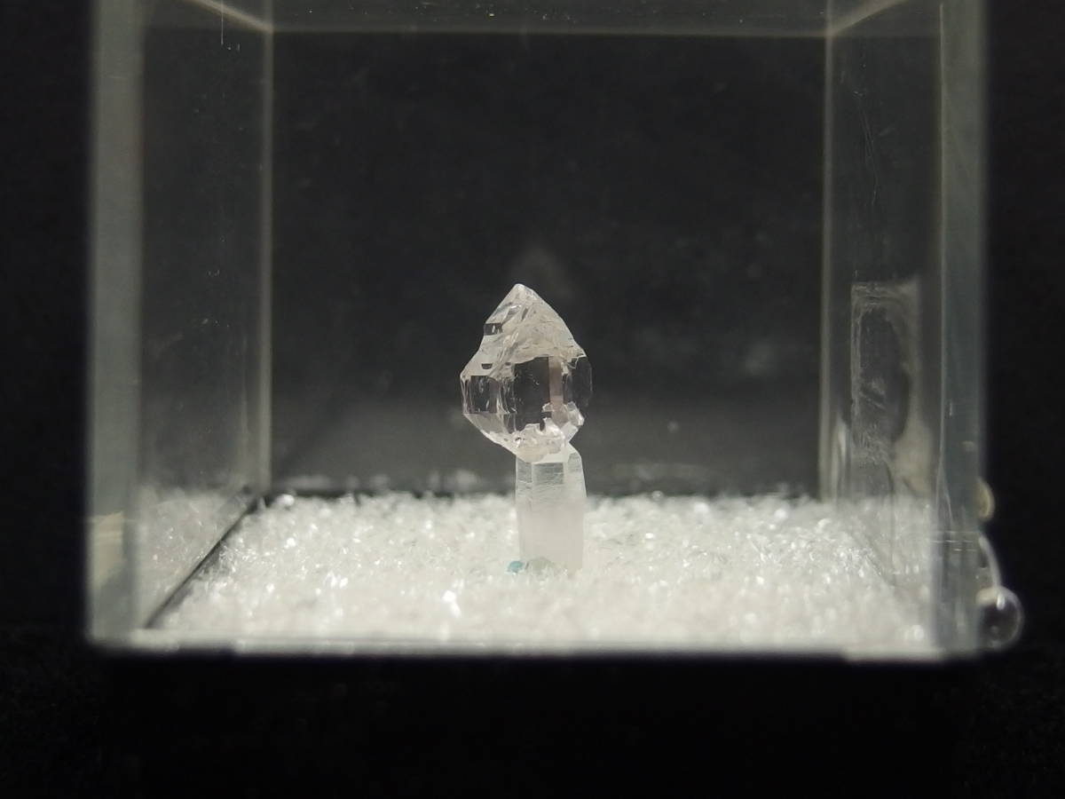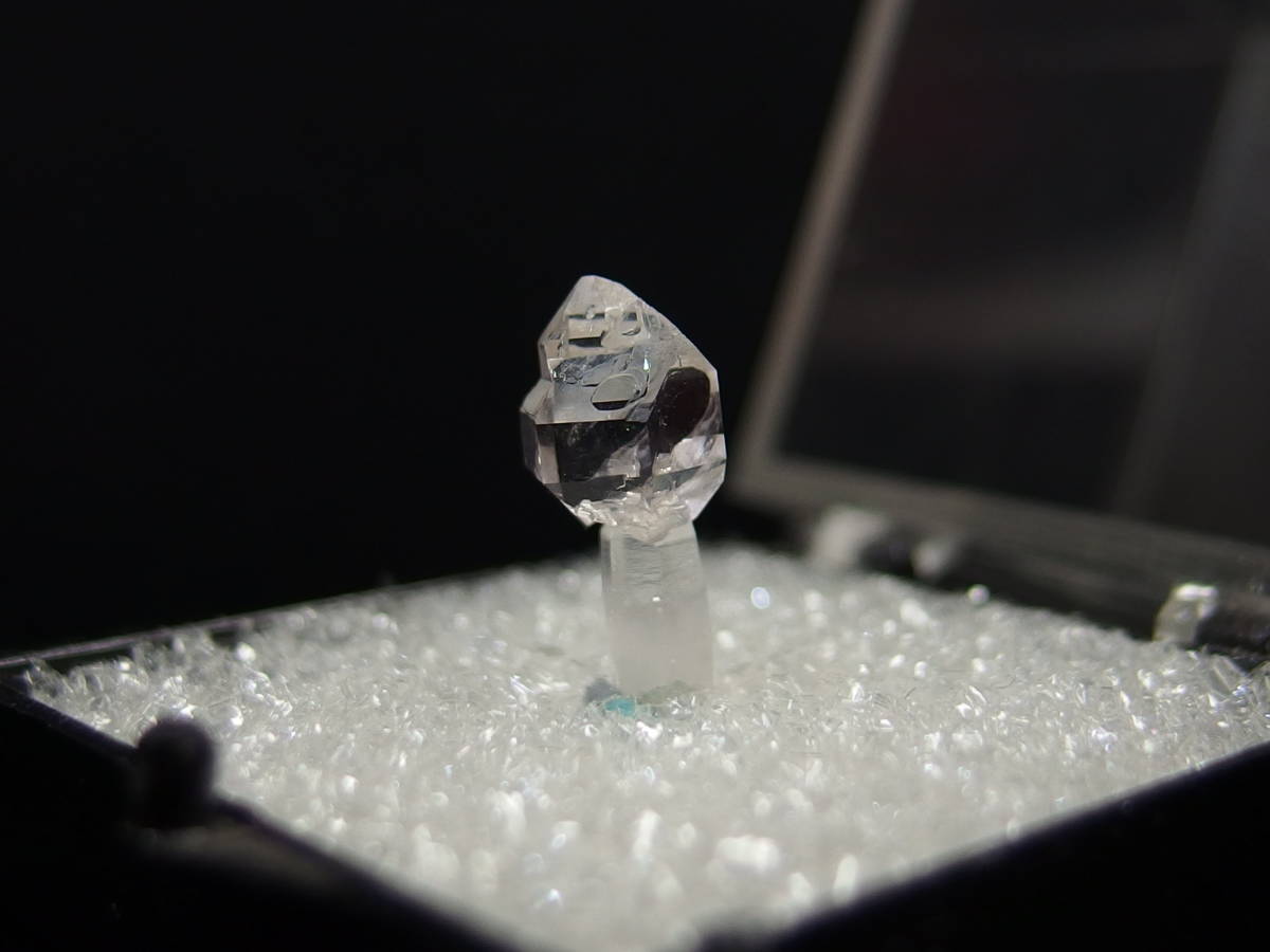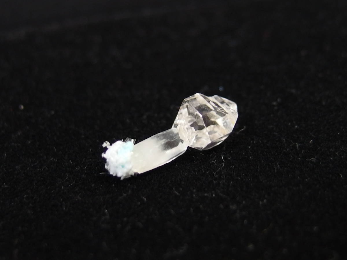 ひとつの水晶の柱状結晶の先端に、もう一つの水晶が被さるように成長したものです。