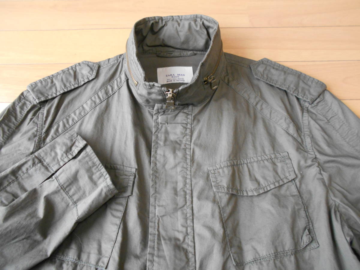 【特別価格】★ZARA MAN BASIC no.RN(USA)77302 スタンドカラーフルジップ ロールアップジャケット★カーキsizeUSA-L★
