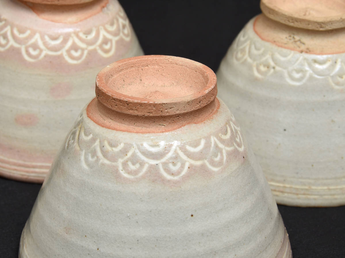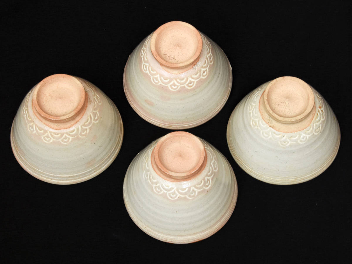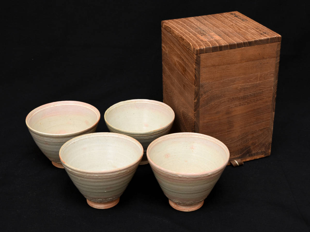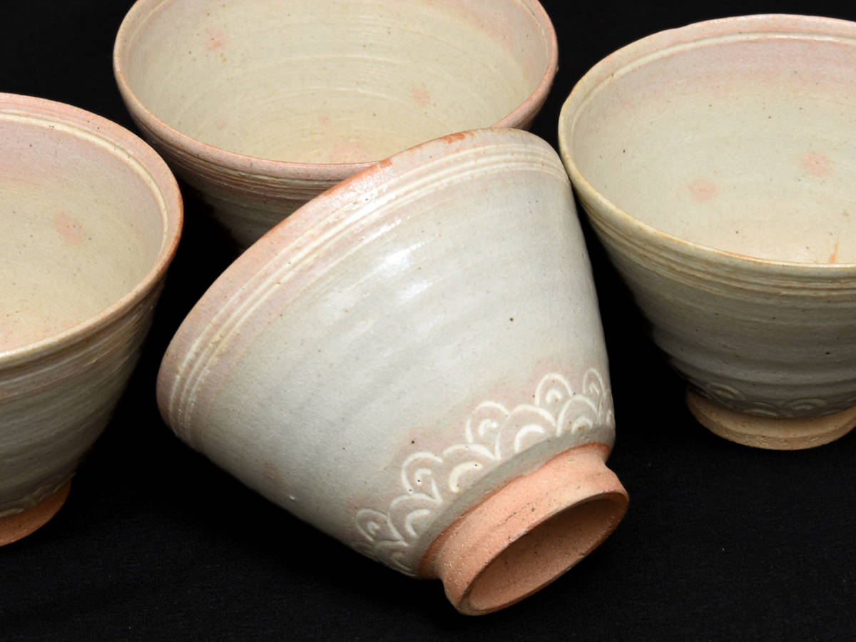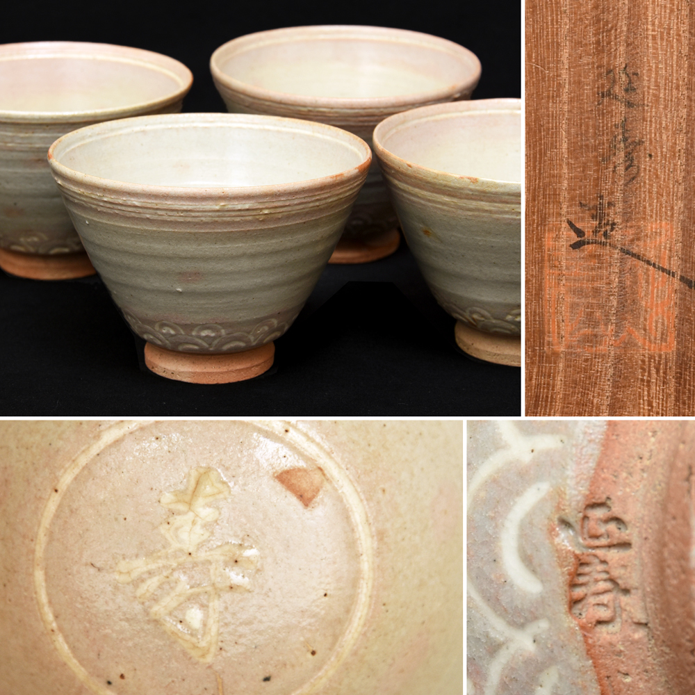 坂部萬古延寿窯 佐藤友宣(造)御本三島青海波 汲出碗4客 共箱 茶箱にも 茶道具 現代工 |