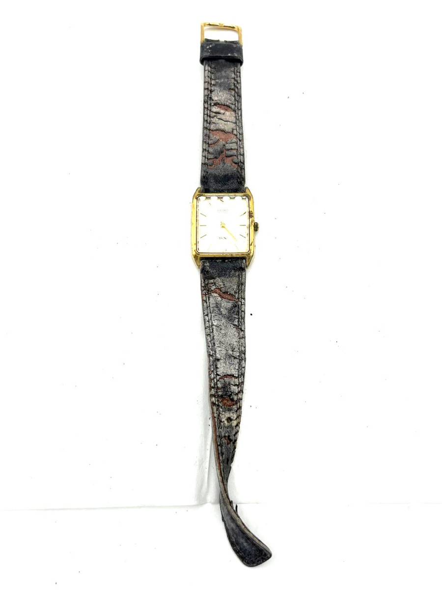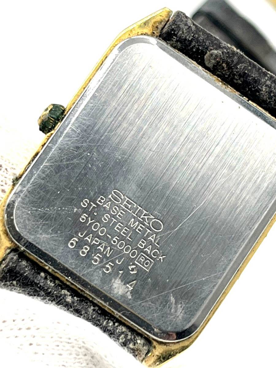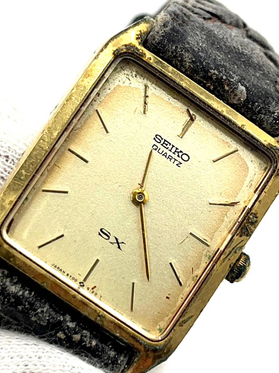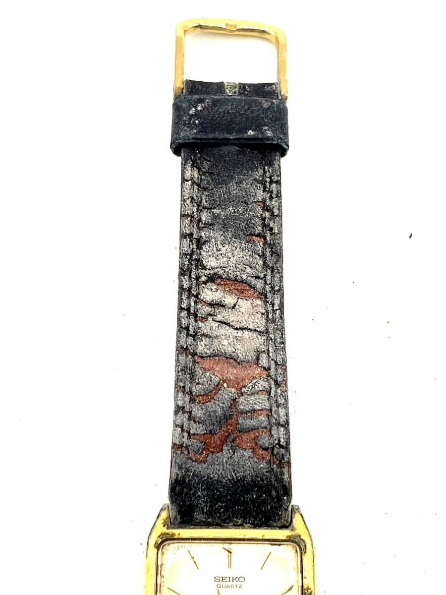 【電池切れ】SEIKO セイコー クォーツ 腕時計 ゴールド文字盤 スクエア レザーベルト SX レディース