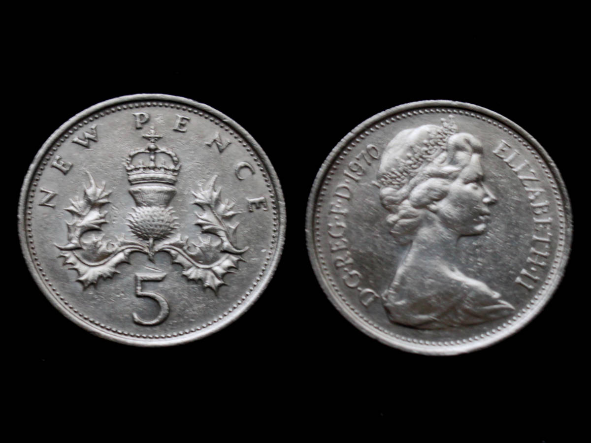 【イギリス】 1970年 5 ニューペンス 白銅貨 エリザベス2世女王 スコットランド アザミ