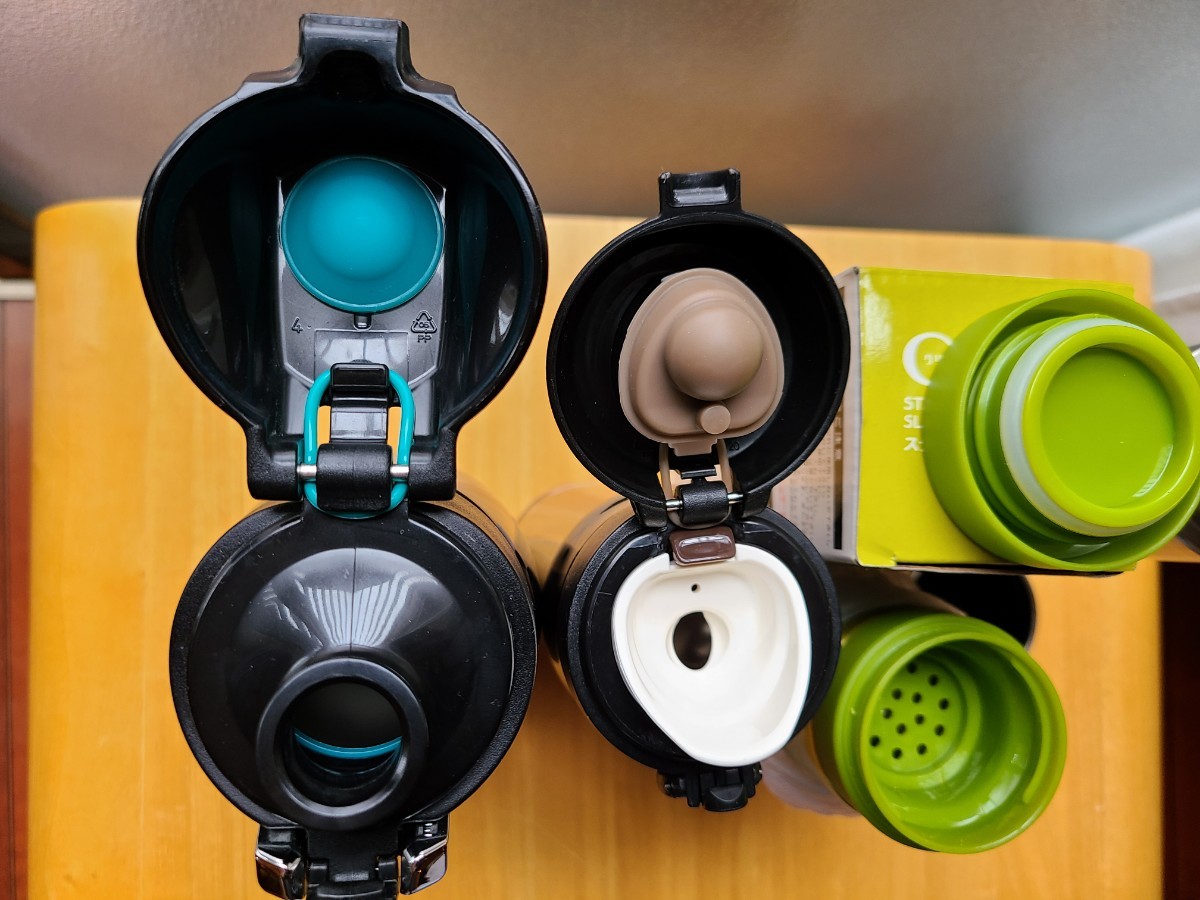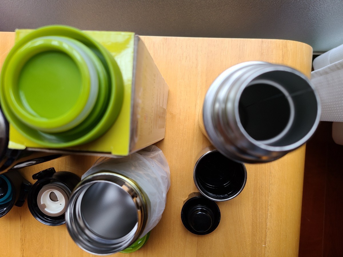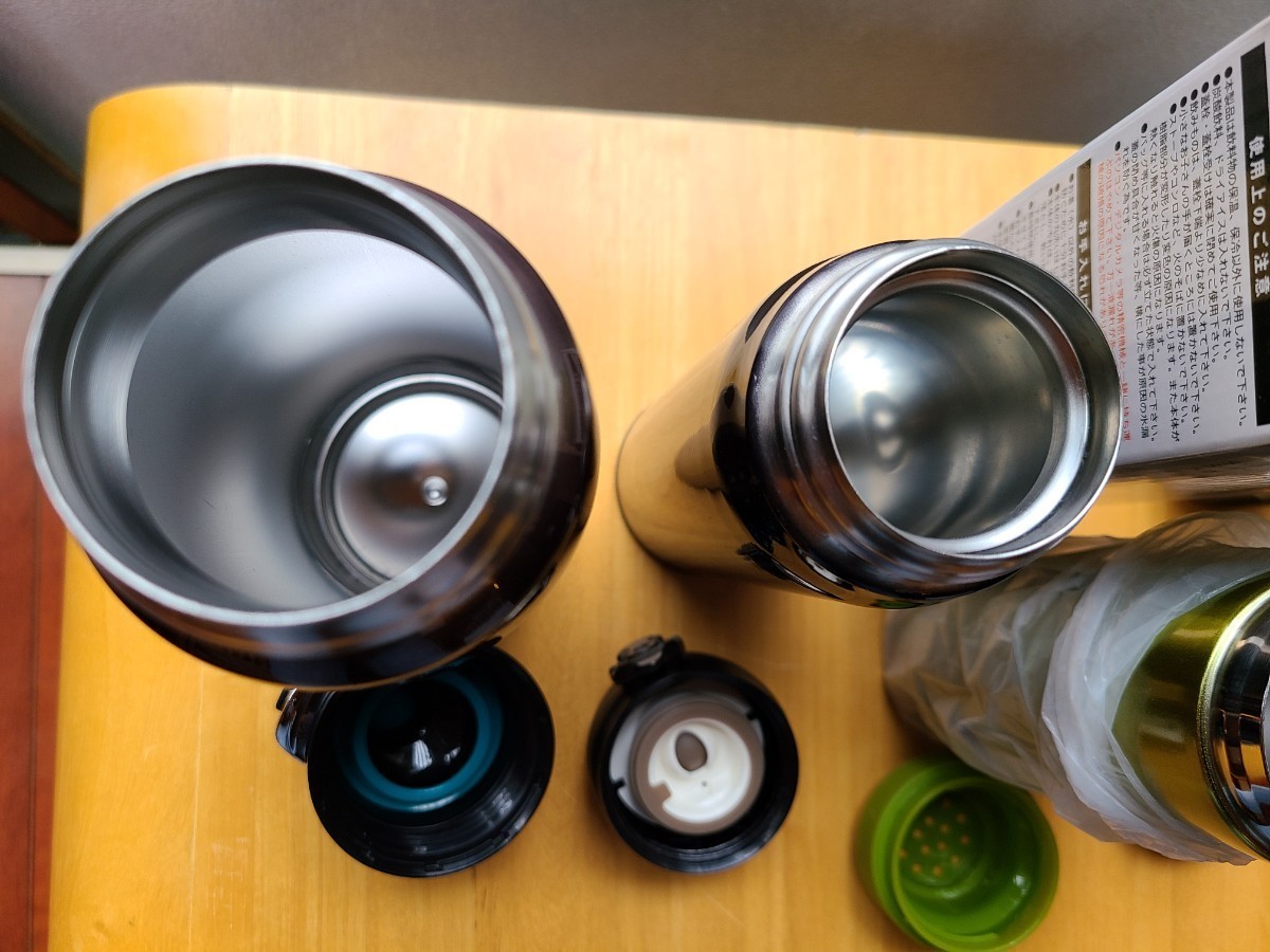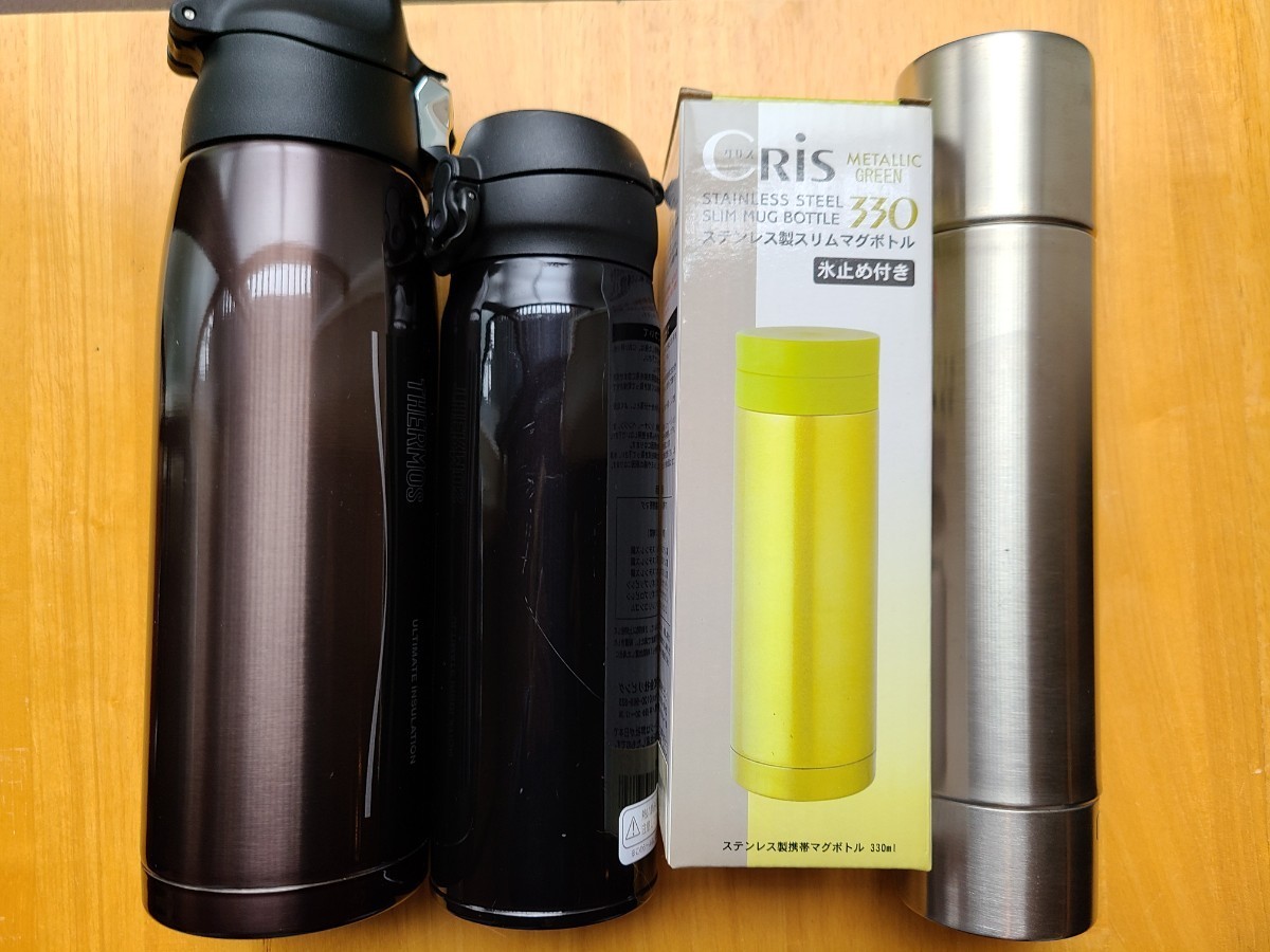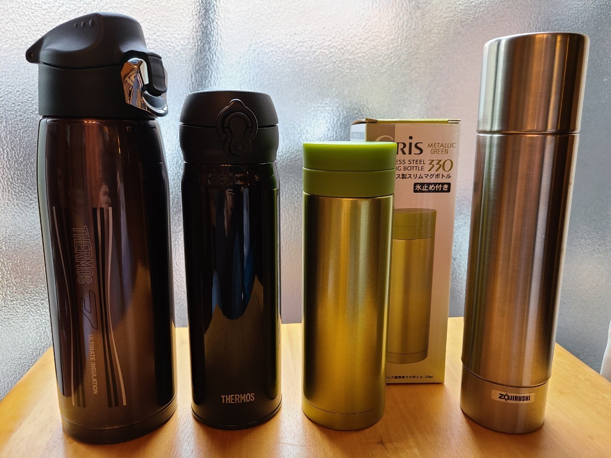 Thermos2本、象印1本、クリス1本の保温保冷ボトルの4本セットです。