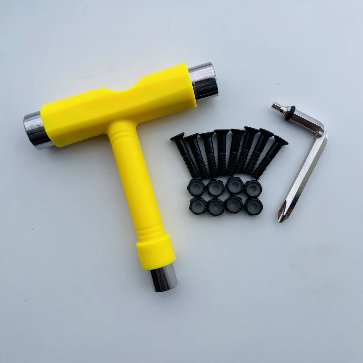 スケートボード Tツール+6角ヘッド 1インチ ビスセット Tレンチ 工具 組立 修理 黄色