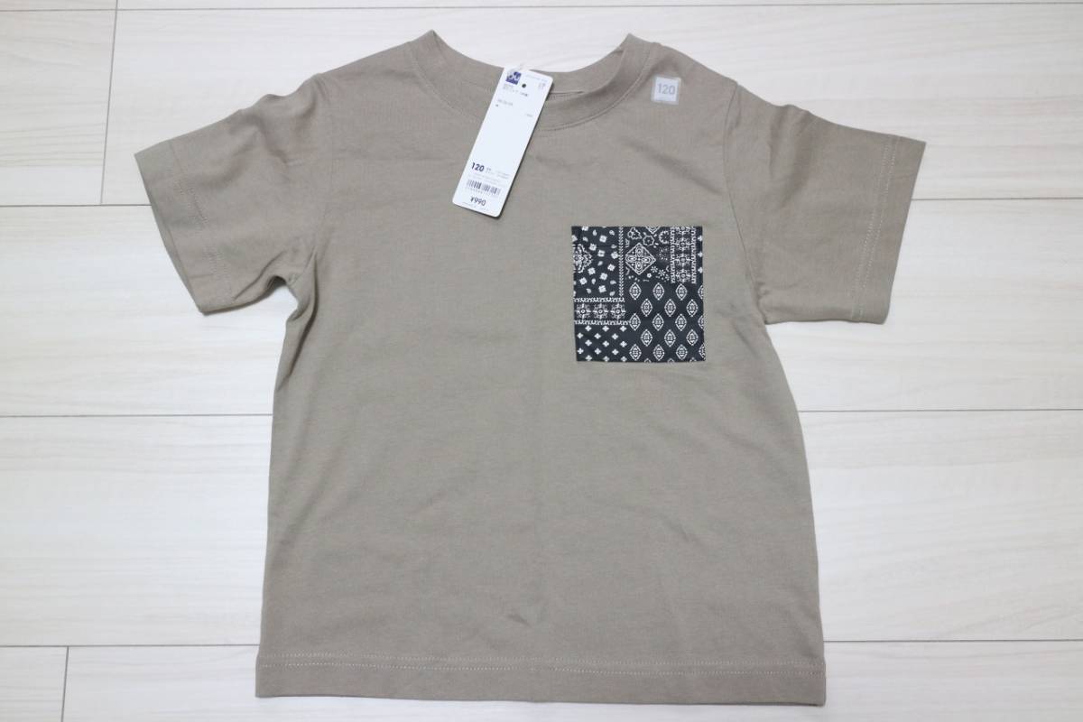 ★新品未使用タグ付★ GU ジーユー 半袖 Tシャツ ペイズリー 120 ベージュ 男女兼用♪