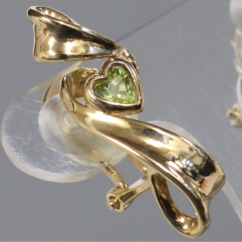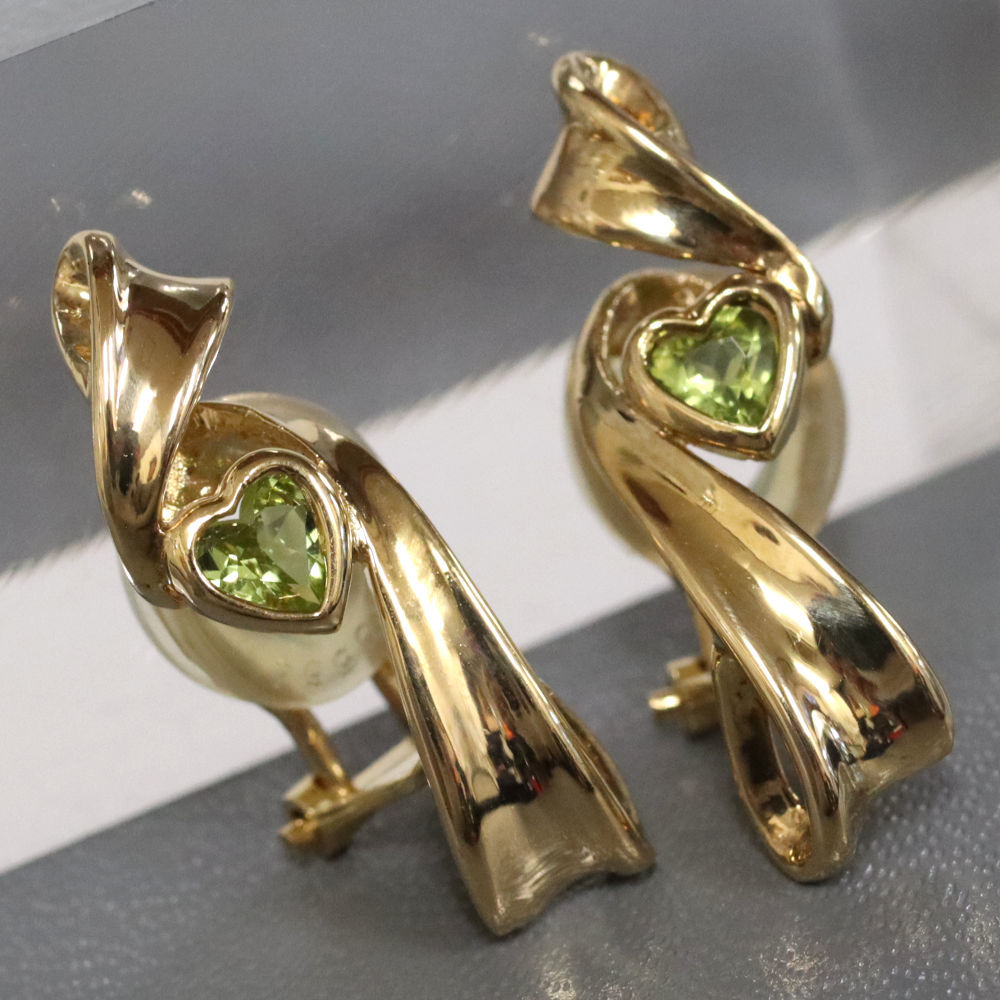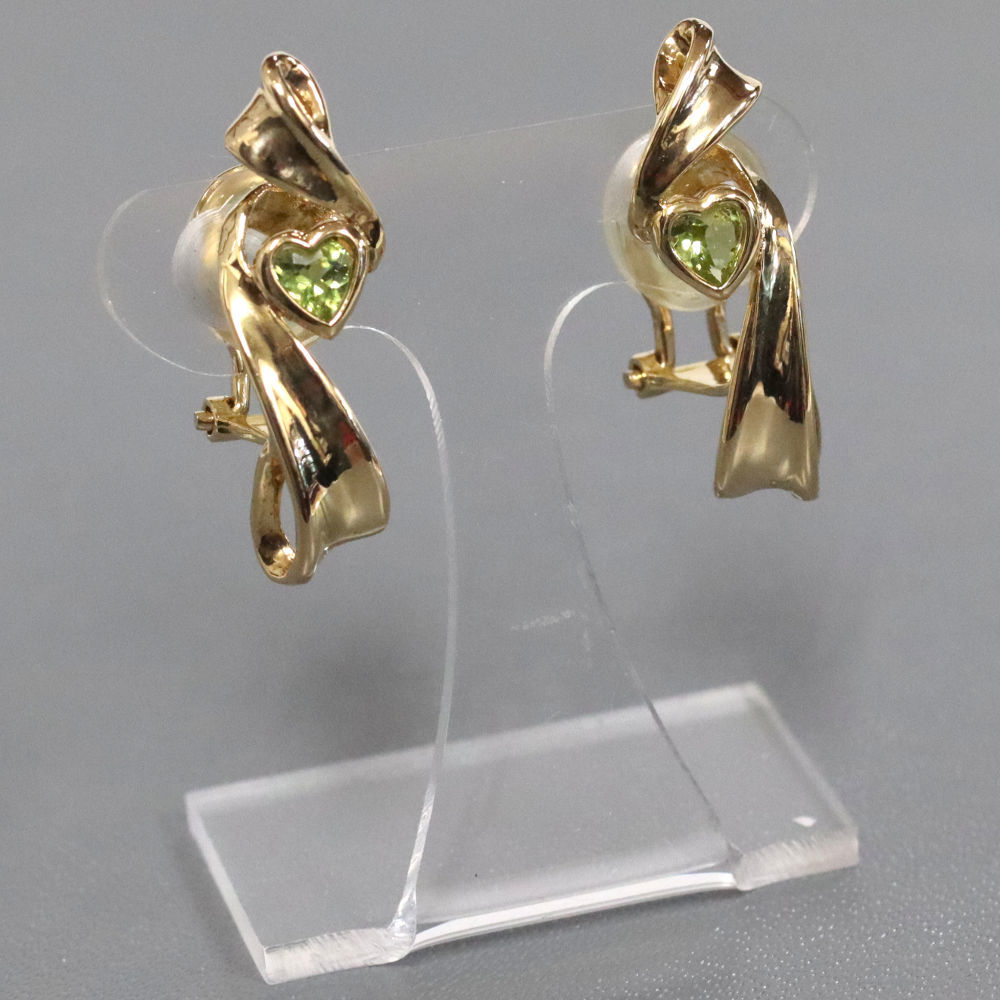 K18ペリドットイヤリングの中古品です。 可愛らしいハートモチーフです。 石目の刻印はありません。 地金に小傷があります。