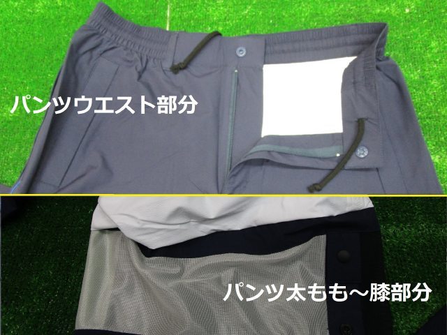素材:【ジャケット・パンツ】ナイロン【膝裏地(前身傾)ポリエステル93%、ポリウレタン3%【膝裏地(後身傾)ポリエステル/