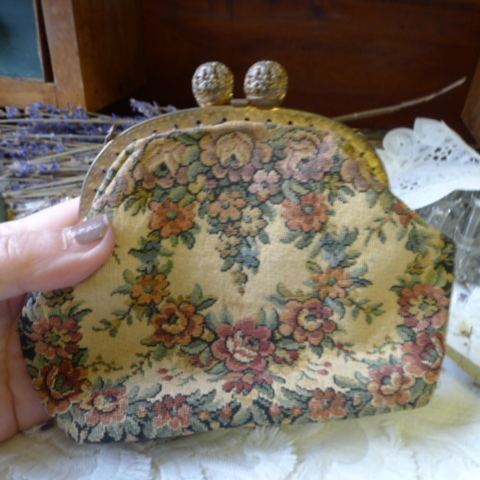 フランス アンティーク ビンテージ 生地 がまぐち カバン 財布 古着 フランス製 ヨーロッパ フランスブロカント イギリス雑貨 384