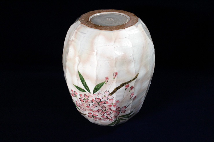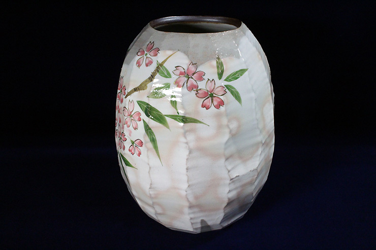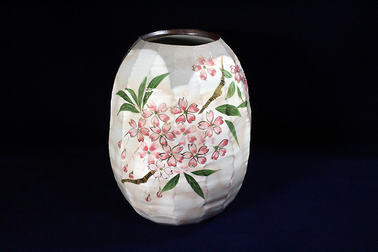 ◎[品名]京焼・清水焼[森俊山・作・桜之図・花瓶]。