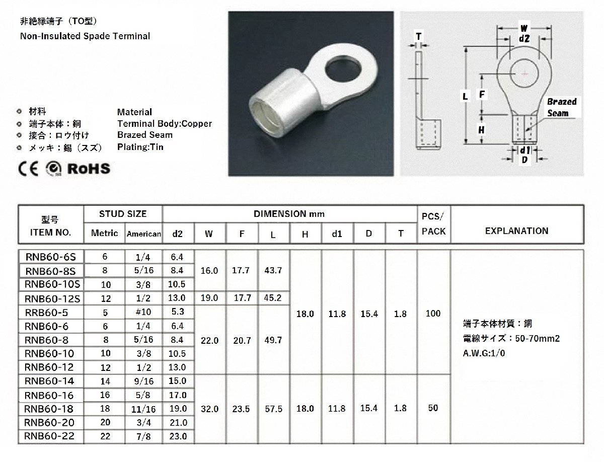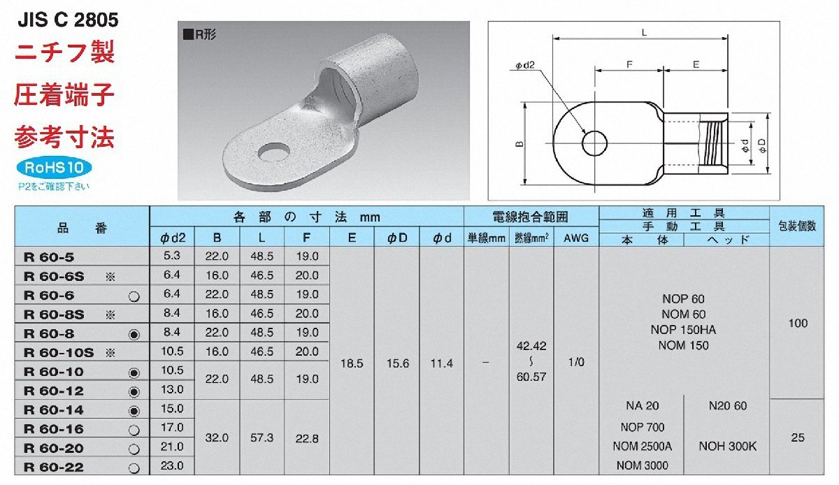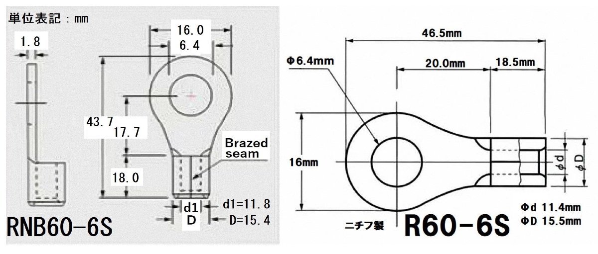 圧着端子RNB60-6S(R60-6Sの互換品です。寸法はご確認ください)!1個300円!