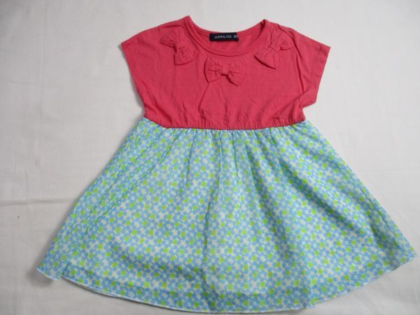 | BE861【ANIMAL KID・アニマルキッド】スカート裏地付き シフォン 袖無 ワンピース 女児 淡赤・淡青 90 | |
