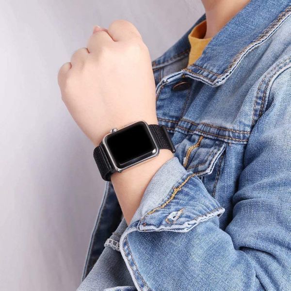Apple Watch (アップル ウォッチ) 交換バンド ベルト Series 6/5/4/3/2/1 SE 対応 42mm/44mm/45mm スポーツに最適!男女兼用 しなやかで通気性の良いナイロン編みループ製!(ブラック)