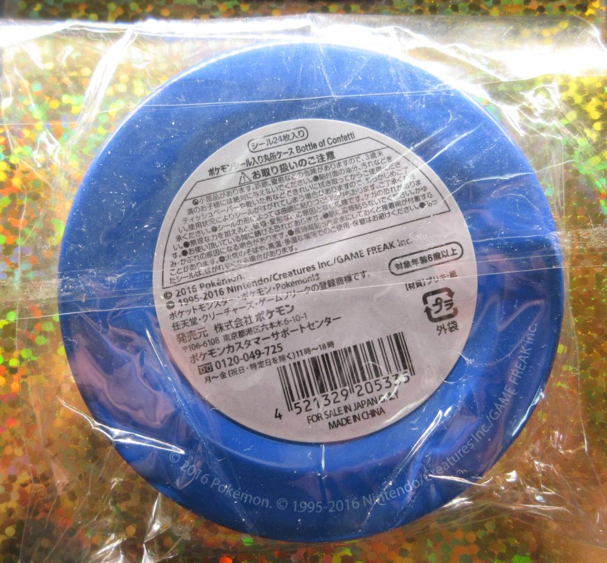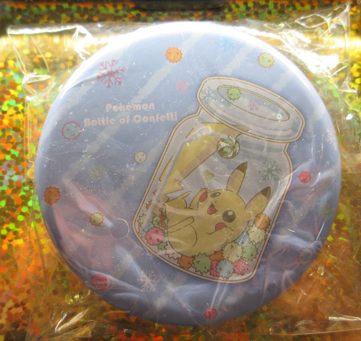 〓送料180円★ポケモンシール入り丸缶ケース★Bottle of Confetti【ピカチュウ】ブリキ・直径約10cm・厚さ2.4cm★シール24枚入り★2016年製