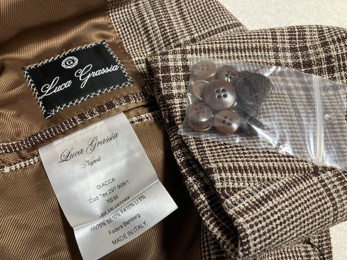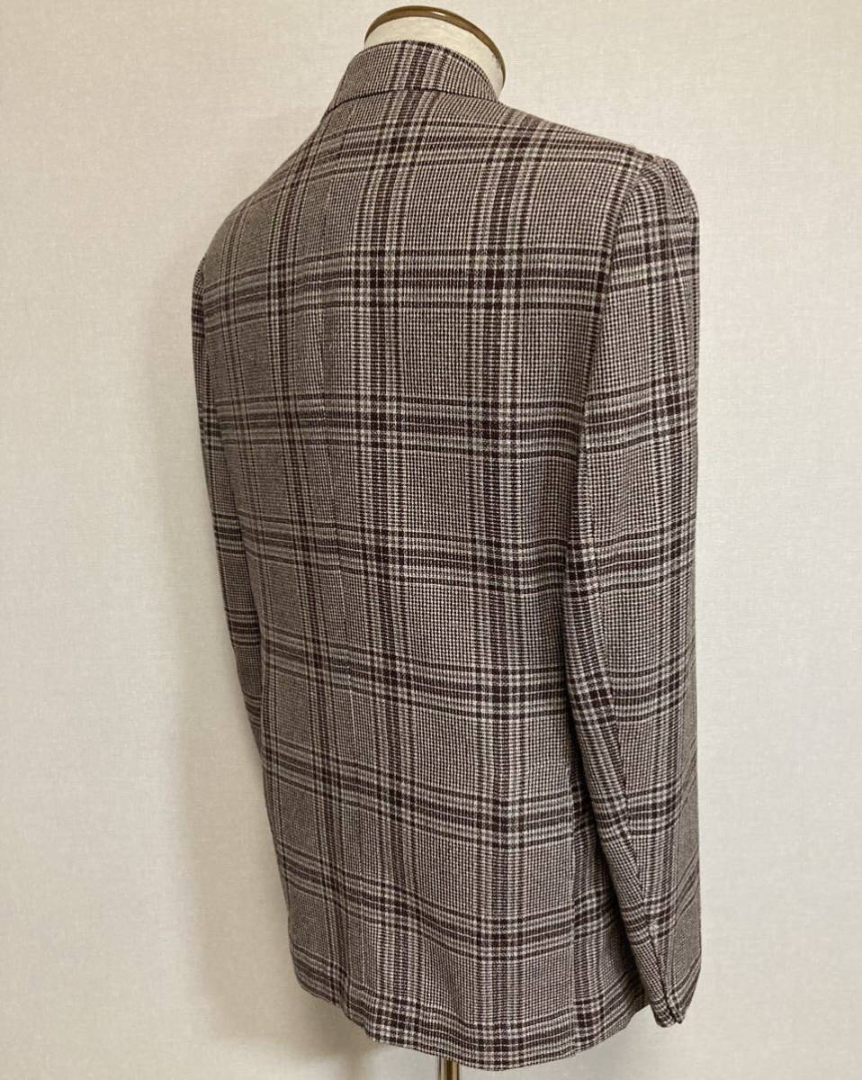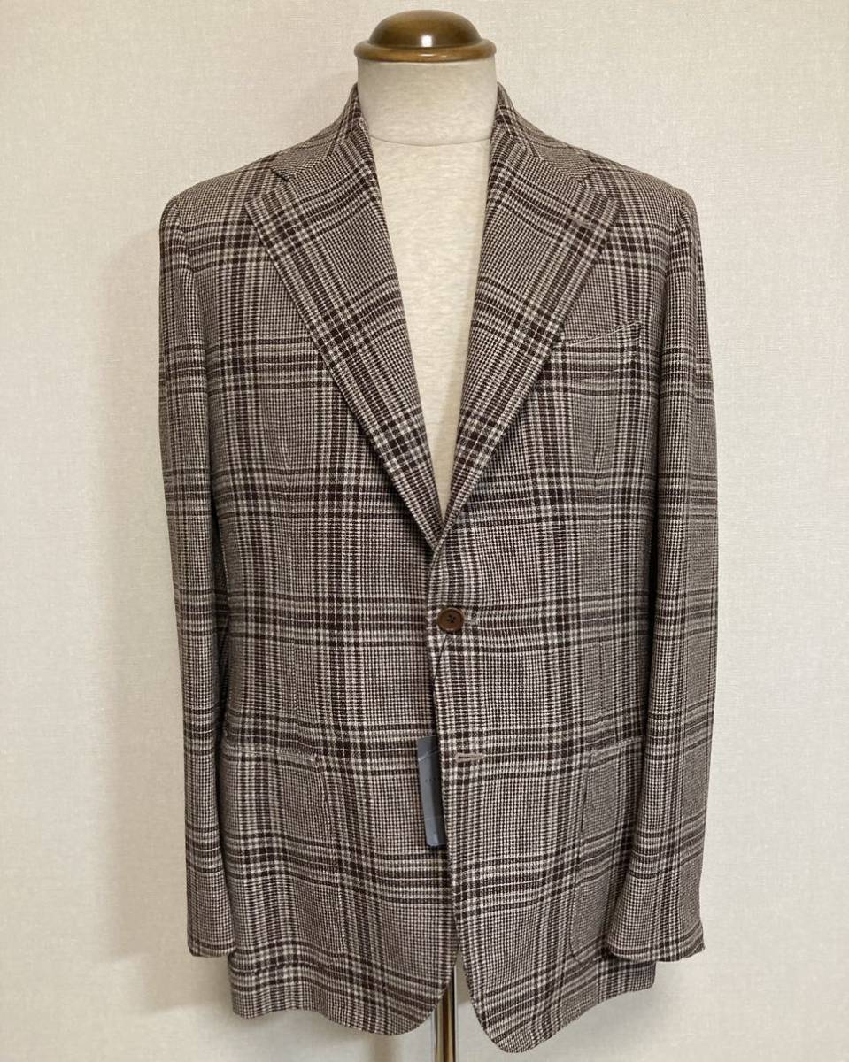 新品 ルカグラシア(伊) 春夏ジャケット50 フルハンド 4者混紡 茶系チェック アットリーニ並み イタリア製 定価27.5万円
