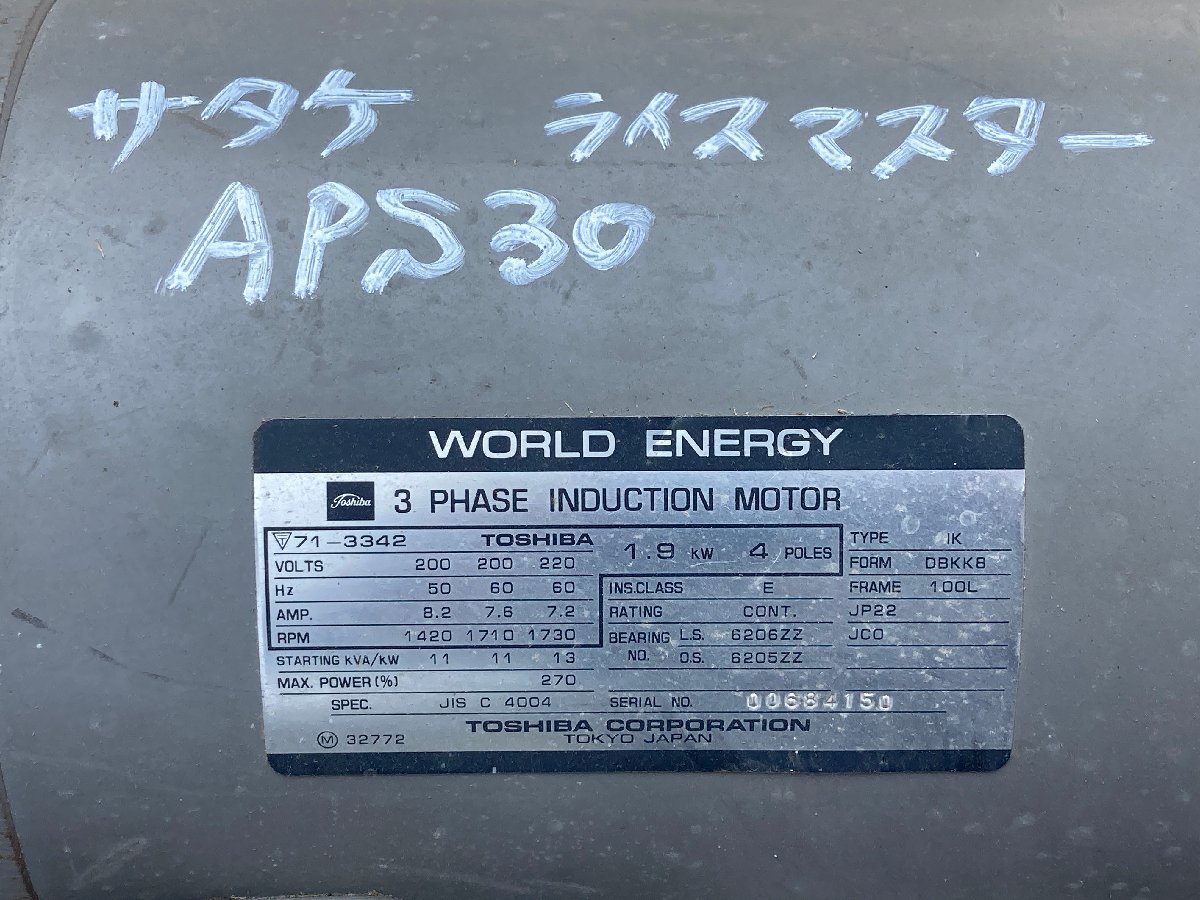 【滋賀発】 籾摺り機 サタケ ライスマスター APS30 モーター 1.9KW 4poles