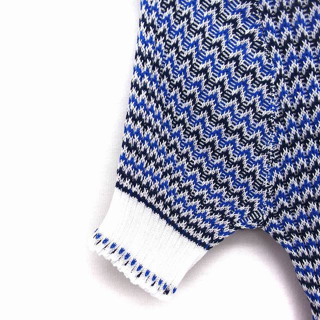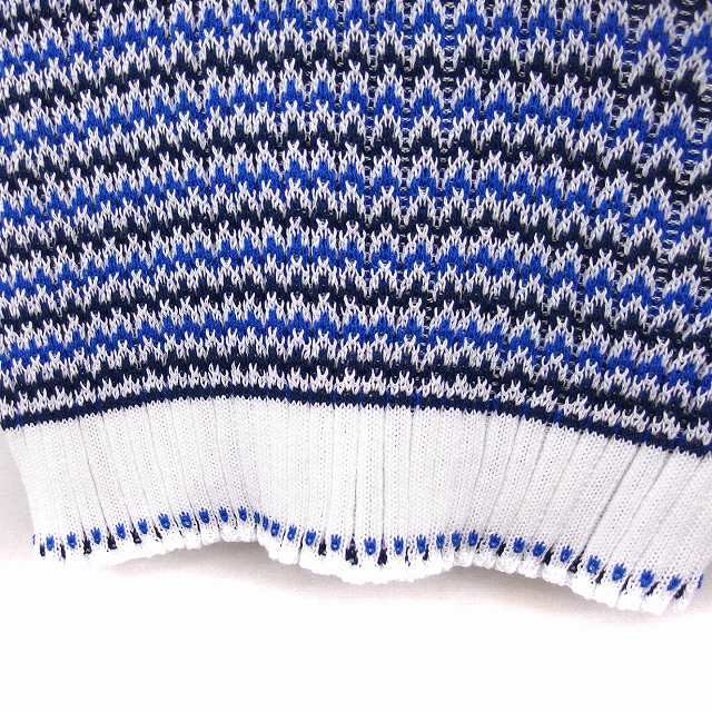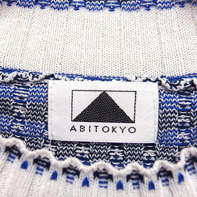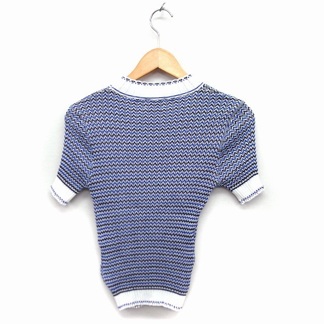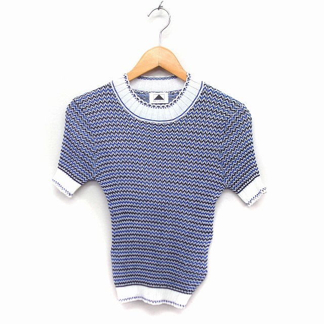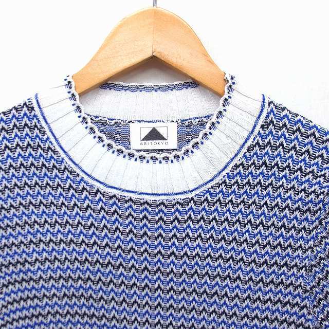 アビトーキョー ABITOKYO リブ ニット セーター 半袖 丸首 ジグザグ柄 F ブルー 青 ブラック 黒 /FT7 レディース