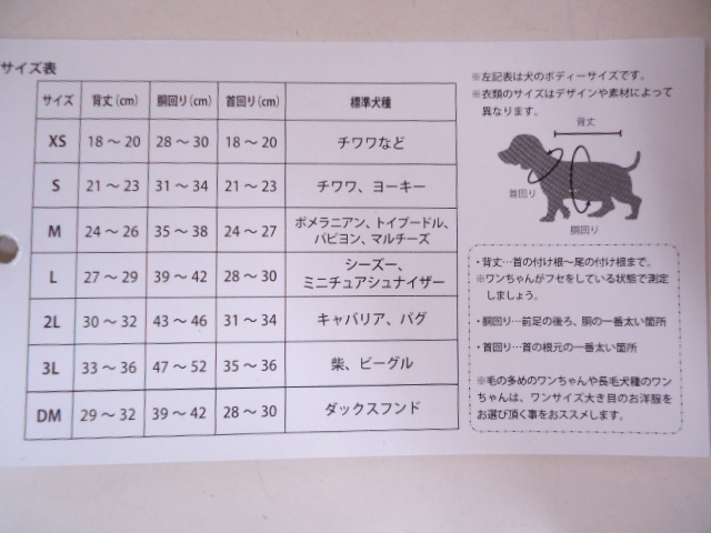 | 商品詳細 | ●標準犬種:ポメラニアン・トイプードル・パピヨン・マルチーズ ●サイズ:M 着丈 24~26㎝ 胴囲 35~38㎝ 首囲 24~27㎝ (商品タグに記載のサイズ) *新品未使用品になります。 *他サイズの写真を使用している場合がございます。 *モニターの環境により多少色目が違って見える場合がございます。 保管時に商品に汚れ、シワ等ある場合がございます。 格安で出品しておりますので、ご了承の上ご入札お願い致します。 |