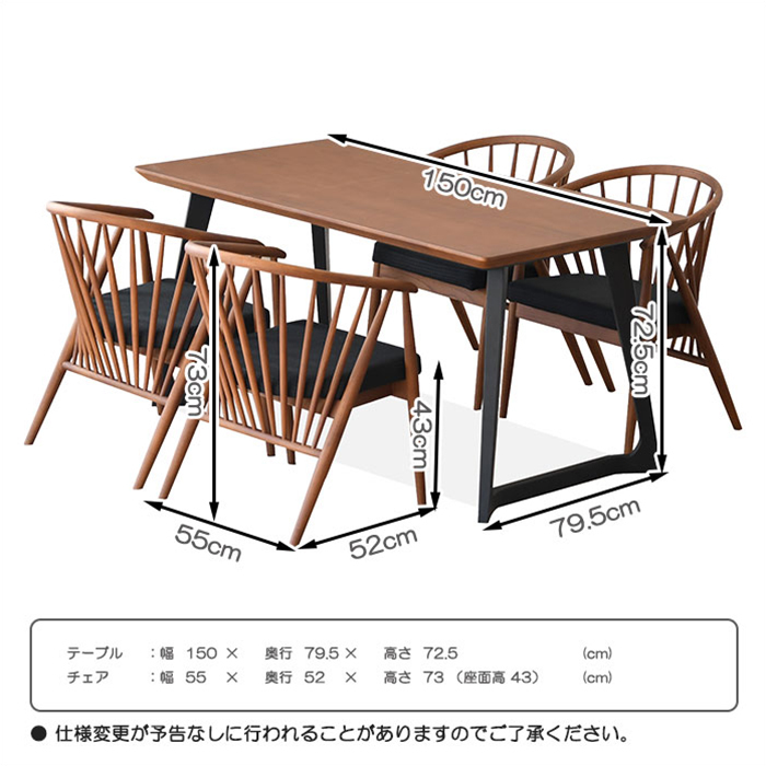 チェア: 幅 55×奥行 52×高さ 73(座面高43) (cm)