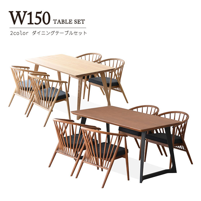 カフェ 食卓 洋風 5点セット ダイニングテーブルセット 幅150 4人掛け 4人用 モダン 西海岸風 ホワイトアッシュ