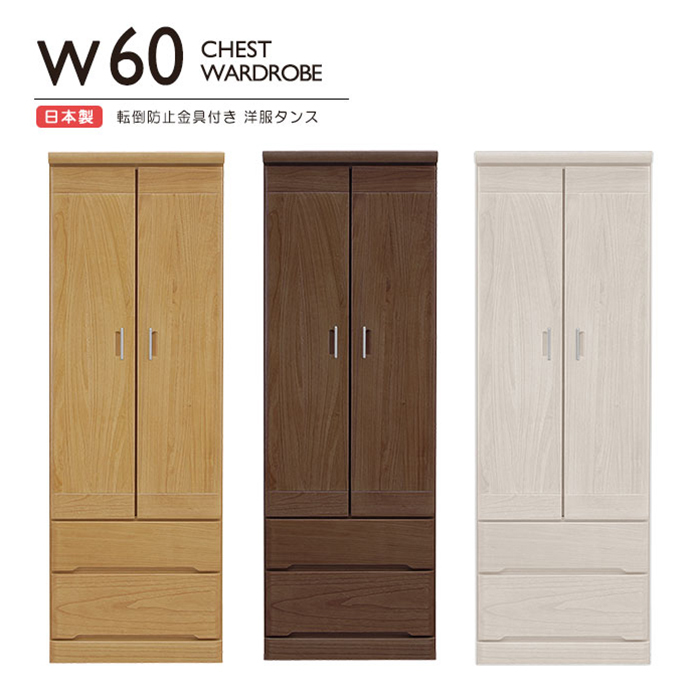 幅60cm 洋服タンス 日本製 国産 ワードローブ チェスト タンス クローゼット 服吊り パイプハンガー ナチュラル
