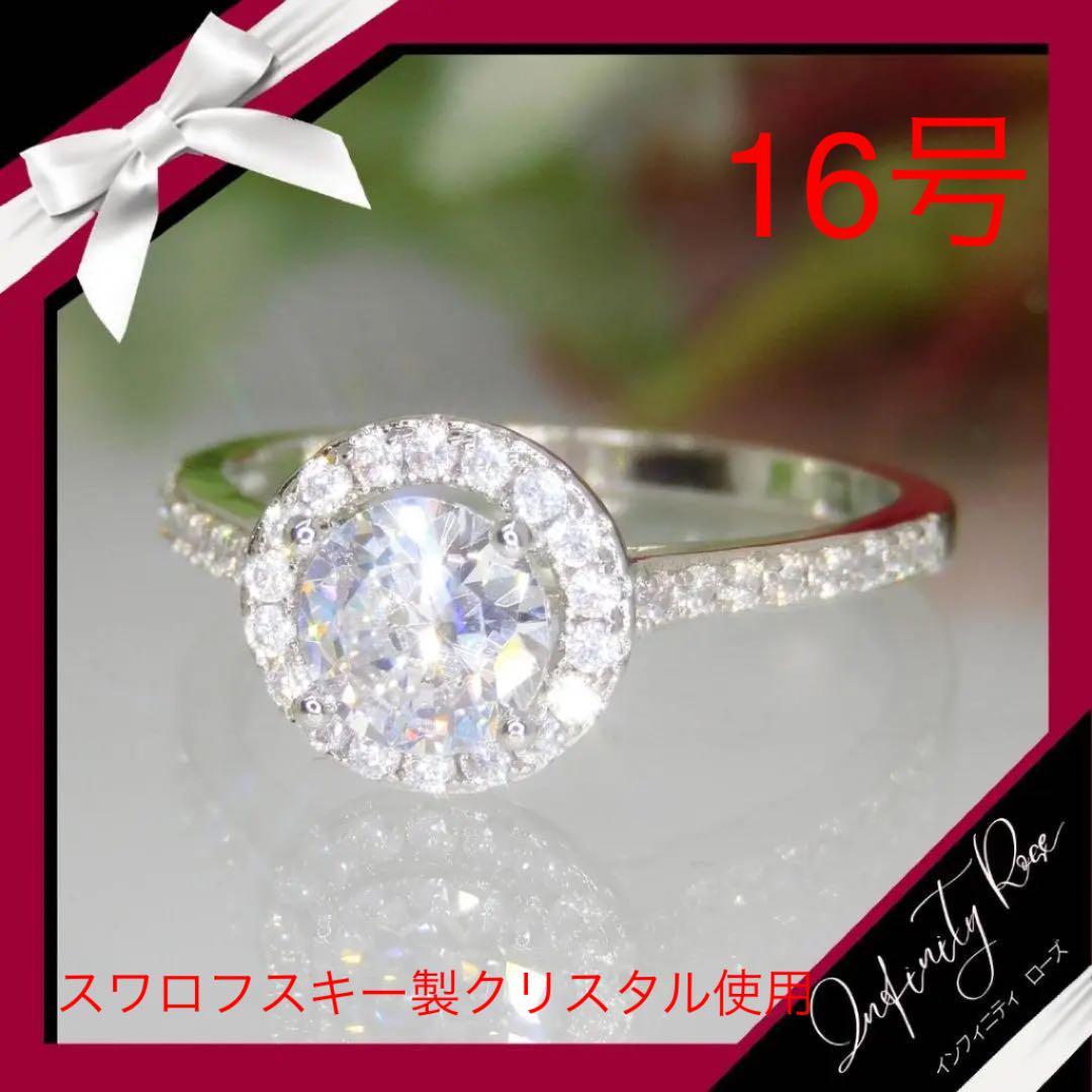 (1095)16号 シルバー高価なまんまるスワロ豪華爪留めリング 指輪 スワロフスキー製クリスタル使用