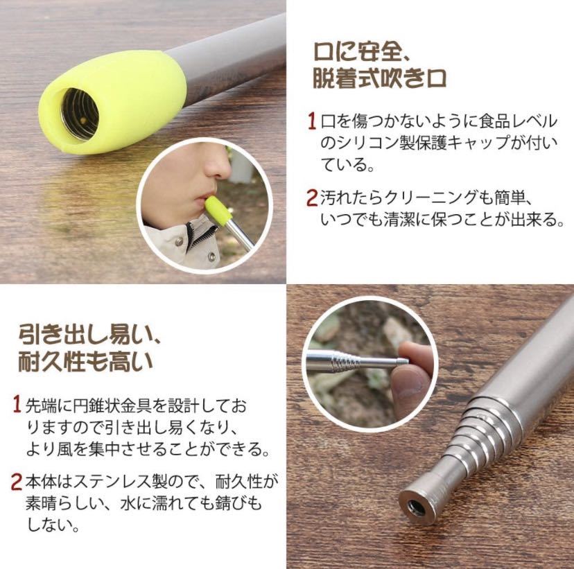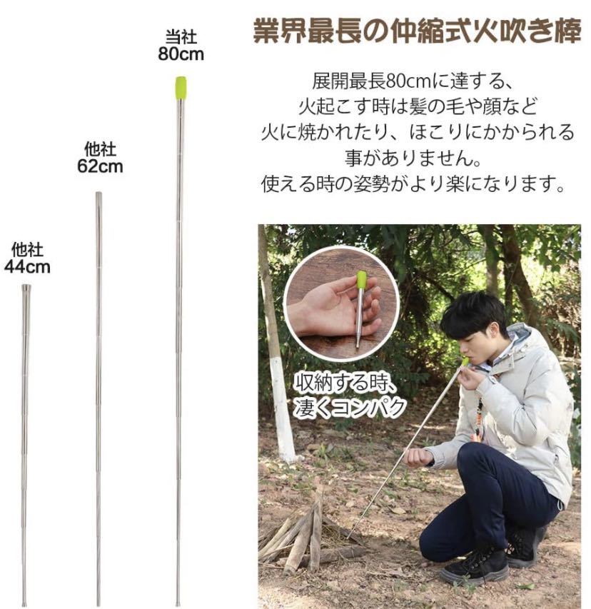 火吹き棒 火起こし棒 伸縮式 業界最長 最長80cm ホイッスル 火吹き 着火 防火防水収納ケース付 口保護キャップ付 携帯 登山 グッズ メタルマッチ ファイヤースターター アウトドア用品 キャンプグッズ